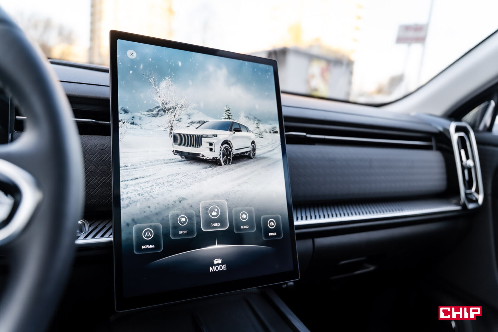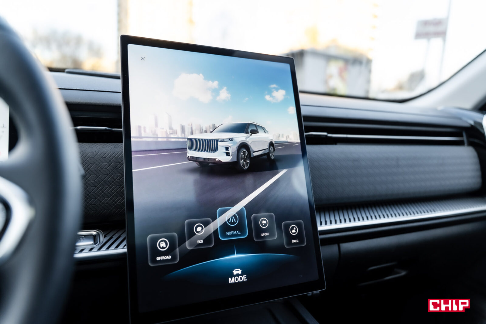 Sterowanie interfejsem Jaecoo 7 odbywa się za pomocą ogromnego, ponad 14-calowego, umieszczonego pionowo wyświetlacza. Interfejs jest bardzo podobny do tego, co znajdziemy w innych chińskich autach, choć w tym przypadku nie bardzo jest się do czego przyczepić.