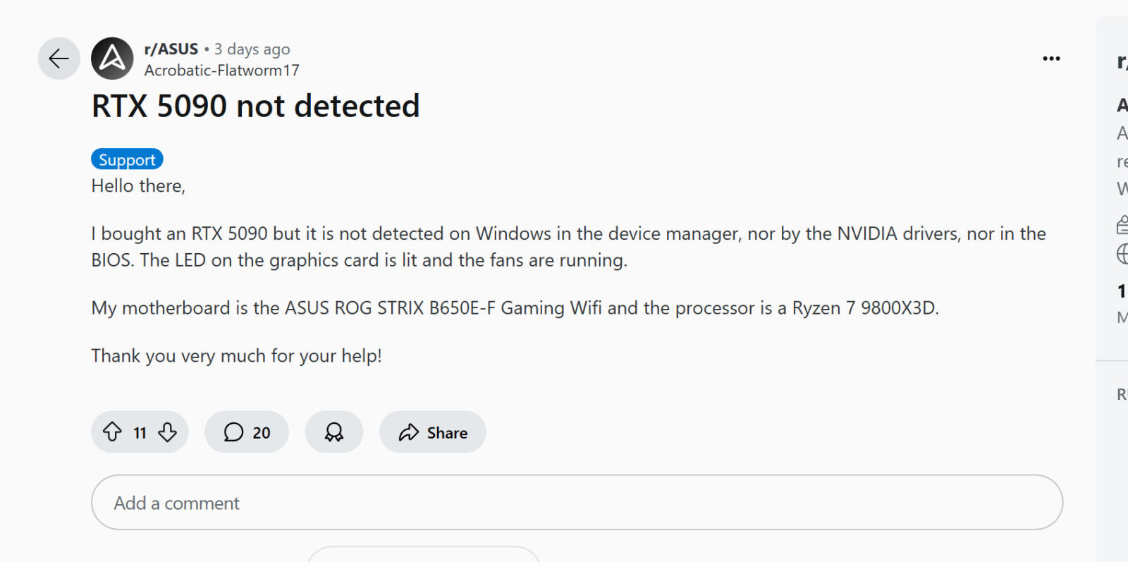 Na r/ASUS użytkownicy zgłaszają identyczne awarie wykrywania