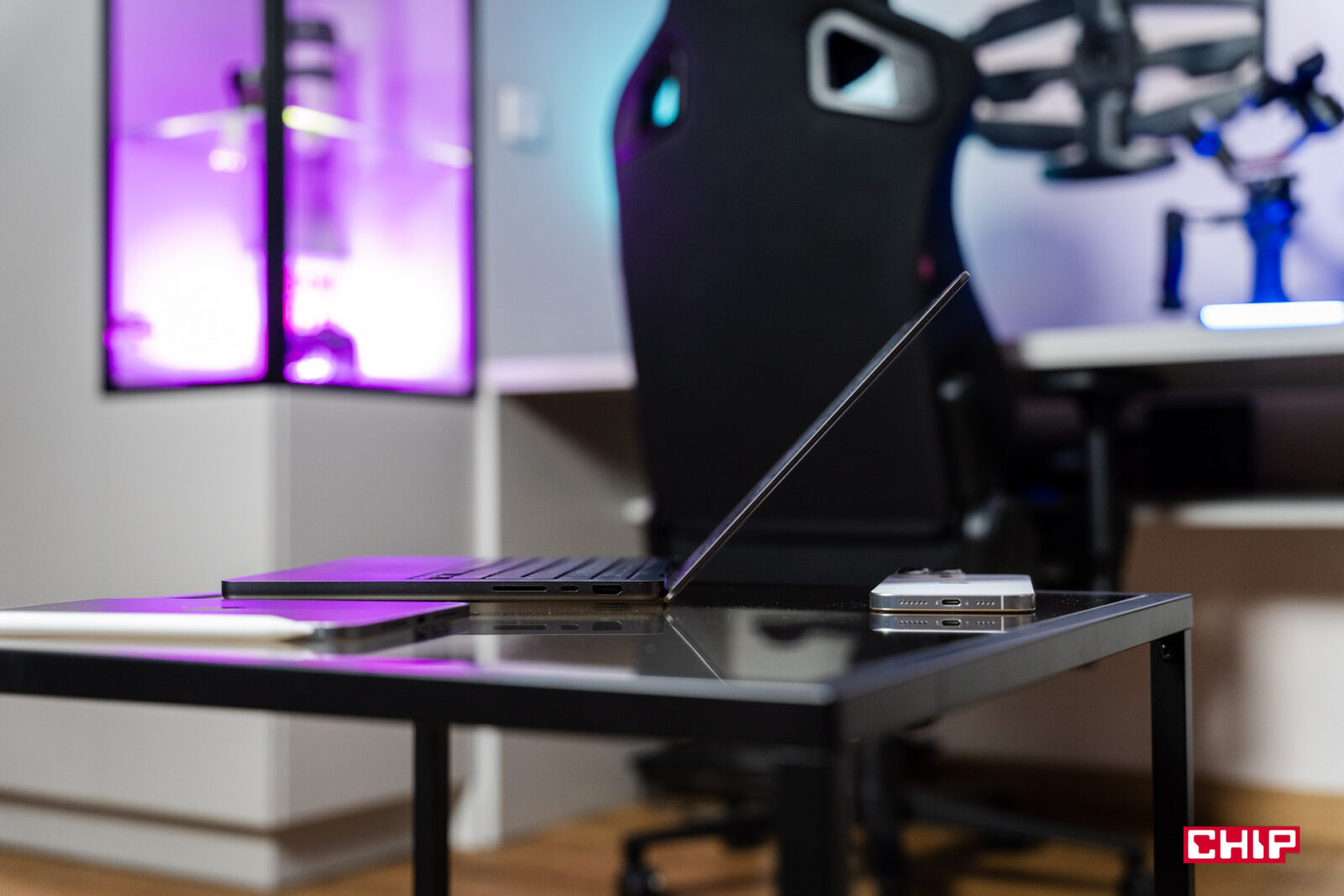 Laptopa również ani razu nie słyszałem. Nie wydaje żadnych dźwięków i trzeba w wyciszonym pomieszczeniu przyłożyć do niego ucho, żeby cokolwiek usłyszeć. Przy Windowsie — nie do pomyślenia. Kultura i czas pracy jest bezkonkurencyjny, po prostu. Fakt, że — jak już wspominałem — to prawdziwie kosmiczna specyfikacja (M4 Pro + 48 GB RAM), więc wydajności najwyższej klasy należało się spodziewać, ale i tak robi to spore wrażenie.