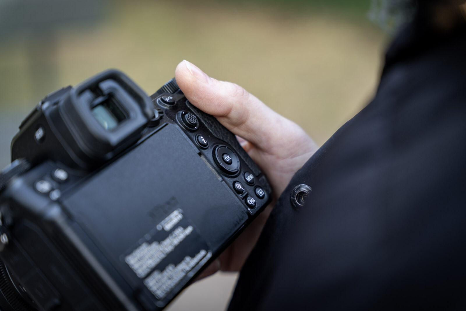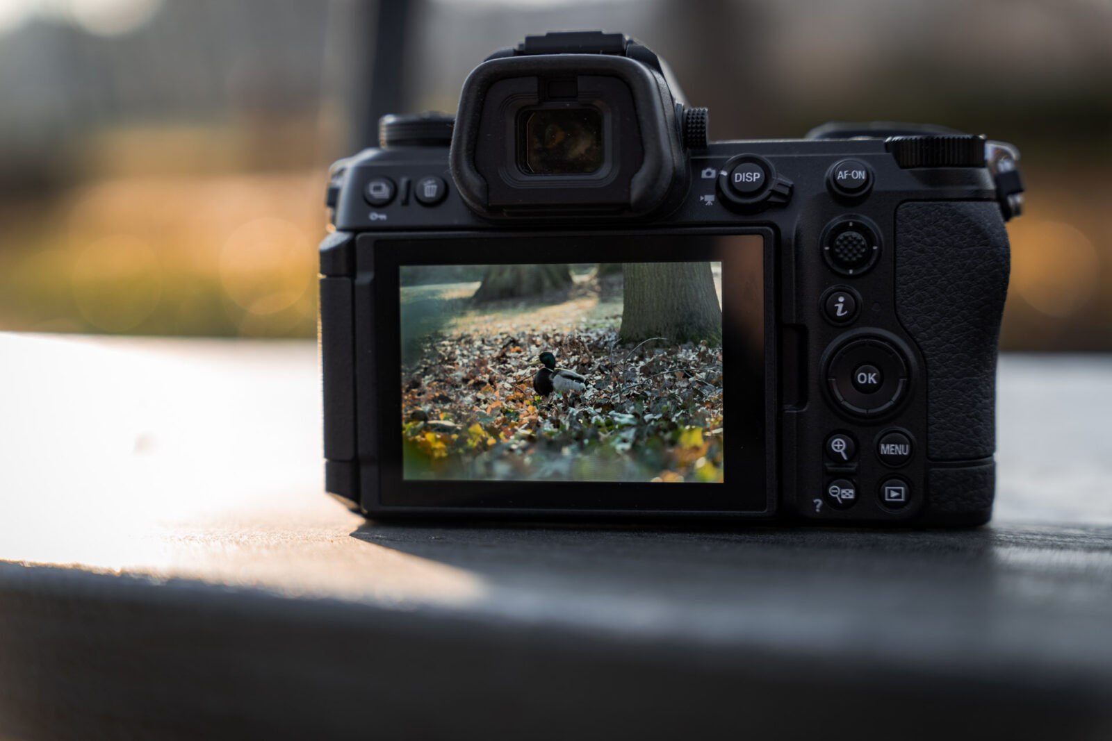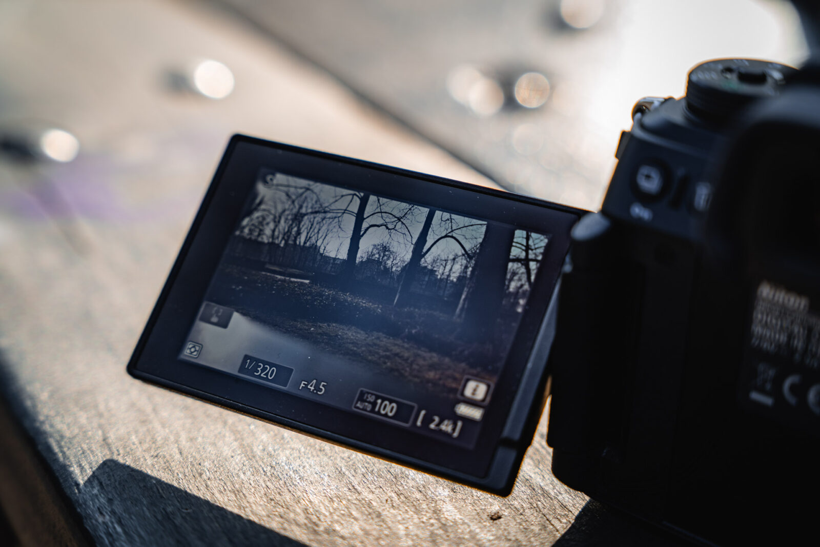Ekran ma przekątną 3,2 cala i jest to panel TFT taki sam, jak w poprzedniej generacji Nikona Z6. Oferuje prawie maksymalne kąty widzenia, a wyświetlany obraz jest bardzo dobrej jakości. Bez zarzutów jest też maksymalna jasność, ale w słoneczne dni odbicia na ekranie są dosyć spore. Wyświetlacz jest dotykowy i za pomocą dotyku możemy zrobić bardzo dużo, w tym mamy tu możliwość przeglądania zdjęć z wykorzystaniem typowo smartfonowych gestów. Ciekawą funkcją jest opcja zoomu na podzielonym ekranie. Na połowach ekranu widzimy przybliżoną lewą i prawą część kadru i możemy przesuwać go niezależnie. Może to być przydatne w fotografii architektury, kiedy zależy nam na idealnej symetrii.