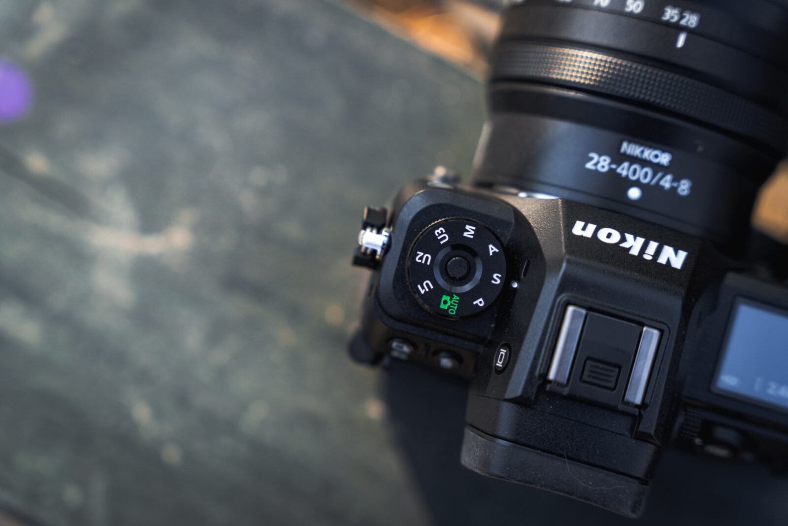 Przy przesiadce z innego systemu raczej nie nikt nie powinien mieć problemów z odnalezieniem się w obsłudze Nikona Z6 III. Mamy tu pokrętło wyboru trybów na górze obudowy po stronie lewej i plus za to, że obrócenie go wymaga przytrzymania przycisku po środku koła. Tryby są takie same do filmowania i fotografowania i to zależy od tego, w jakiej pozycji mamy ustawiony suwak na prawo od wizjera.