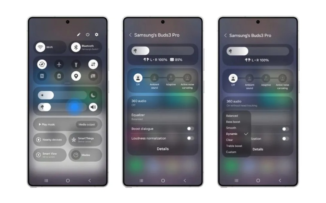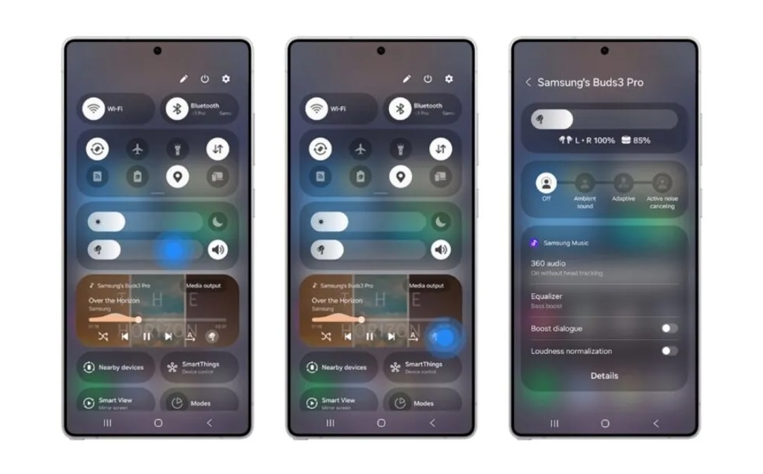 Przede wszystkim właściciele tej generacji słuchawek zyskają przede wszystkim dostęp do bardziej szczegółowych elementów sterujących Galaxy Buds 3 z poziomu panelu szybkich ustawień. Nie trzeba będzie przeszukiwać ustawień aplikacji towarzyszącej, by znaleźć te opcje, bo wystarczy długie naciśnięcie suwaka głośności, by wyświetlić stronę z elementami sterującymi i przełącznikami specyficznymi dla słuchawek Samsunga. To naprawdę ogromne ułatwienie.