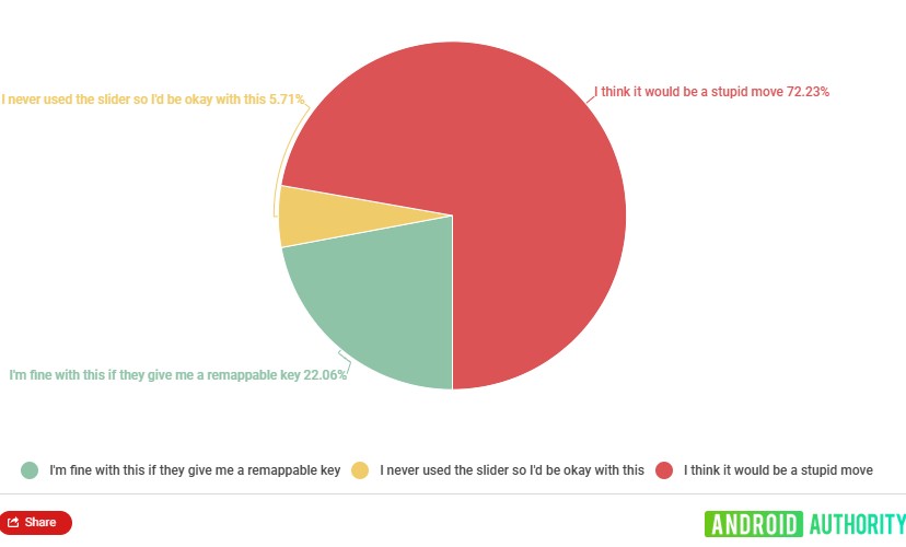 Przeszło 70% ankietowanych stwierdziło, że dla nich to głupi pomysł. 22% z chęcią przyjmie tę nowość, natomiast dla blisko 6% jest to obojętne, bo i tak nie używali suwaka alertów. Oczywiście ta ankieta zbadała jedynie nastroje wśród dość wąskiego grona użytkowników sprzętów OnePlus i Oppo, jednak w sieci można słyszeć podobne głosy niezadowolenia. Oczywiście nic nie jest jeszcze przesądzone i wciąż poruszamy się w sferze plotek, ale cóż, jeśli obaj producenci będą chcieli, to wprowadzą taką zmianę, czy to się nam podoba, czy nie. Jednak być może wezmą pod uwagę zdanie klientów, zwłaszcza gdy tych głosów będzie przybywać. Zobaczymy.