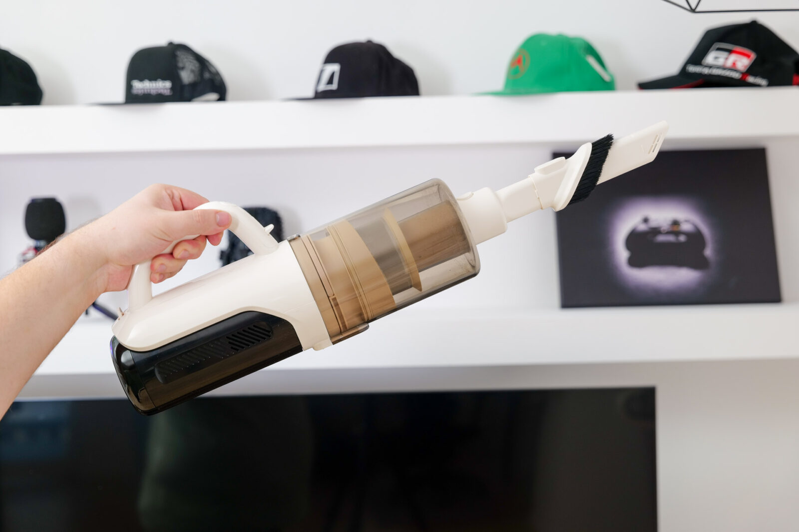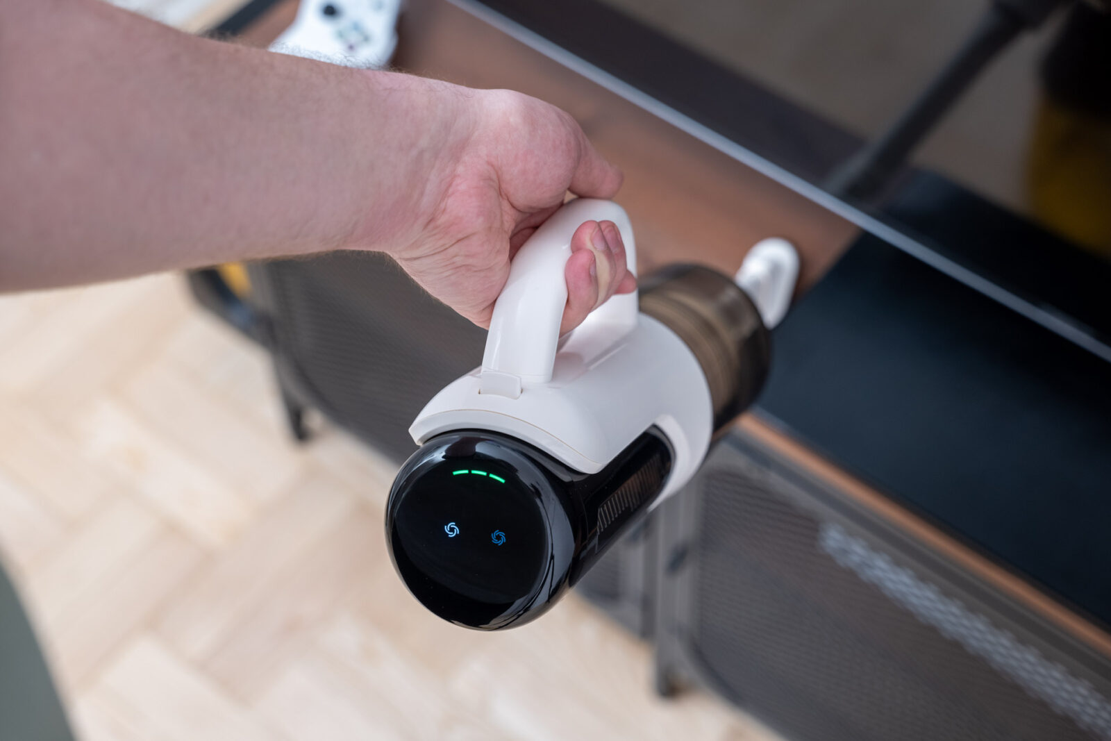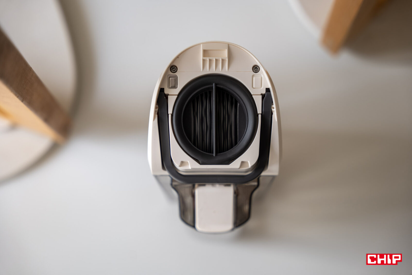 Jednocześnie komfort sprzątania może obniżać jeszcze jedna rzecz. Niezależnie od tego, czy jesteście prawo-, czy leworęczni, silnik będzie wywiewał powietrze w waszym kierunku. Jeżeli będziecie sprzątali na większej wysokości, będzie ono trafiało w waszą twarz. Po dłuższym sprzątaniu staje się ono dość ciepłe. Nie jest to najprzyjemniejsza sytuacja, ale nie sprawiała ona we mnie dużego dyskomfortu. Z pewnością nie poczułem w wydychanym powietrzu drobin kurzu, więc filtr HEPA wywiązał się z zadania. W takim momencie czuć, że odkurzanie jest tu dodatkiem, ale i tak zrealizowanym na dobrym poziomie.