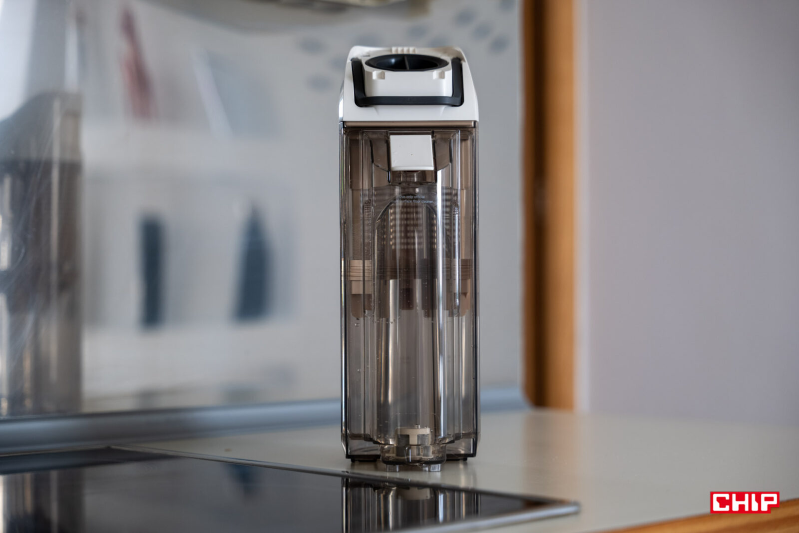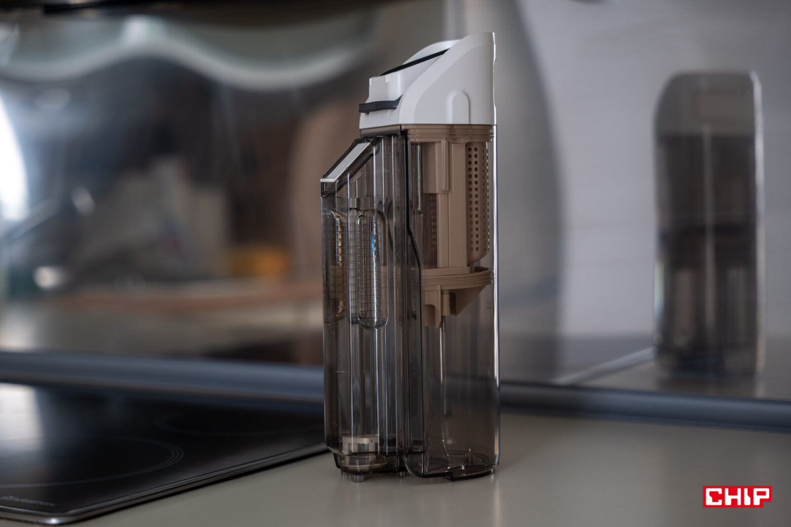 Cały moduł mopujący to całkiem sprytna konstrukcja. W tylnej części łączy filtr EPA z pojemnikiem na brudną i czystą wodę. Należy pamiętać, że taki pojemnik lepiej wyjmować w pobliżu miejsca, gdzie będziemy go oczyszczać i uzupełniać wodę. Inaczej uszczelka, przez którą przechodzi czysta woda, może nas ochlapać.