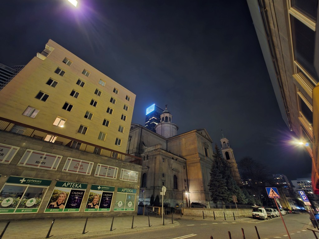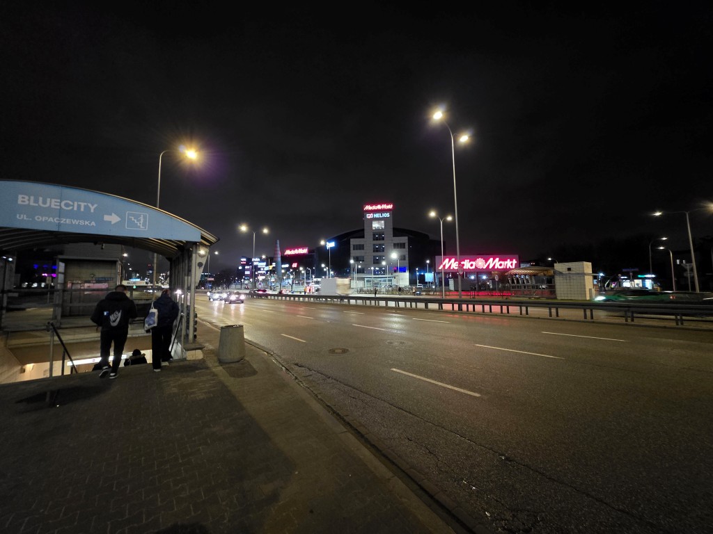 Prawda jest też taka, że często nie potrzebujemy dodatkowego przetwarzania – po prostu dostajemy dobrej jakości zdjęcie. Niestety, jest też druga strona medalu – niepotrzebnie zazielenione zdjęcia nocne z dziwnie dobraną kolorystyką. Za to punkty świetlne są dobrze zatrzymane w ryzach i najczęściej oprogramowanie daje im radę. Widziałem lepsze zdjęcia nocne, także w ubiegłorocznych flagowcach, a szkoda. Nie jest źle, ale mogło być lepiej. Samsung radzi sobie dobrze tam, gdzie jest światło w jednym kolorze, a gorzej z wieloma źródłami lub z większymi ciemnościami.