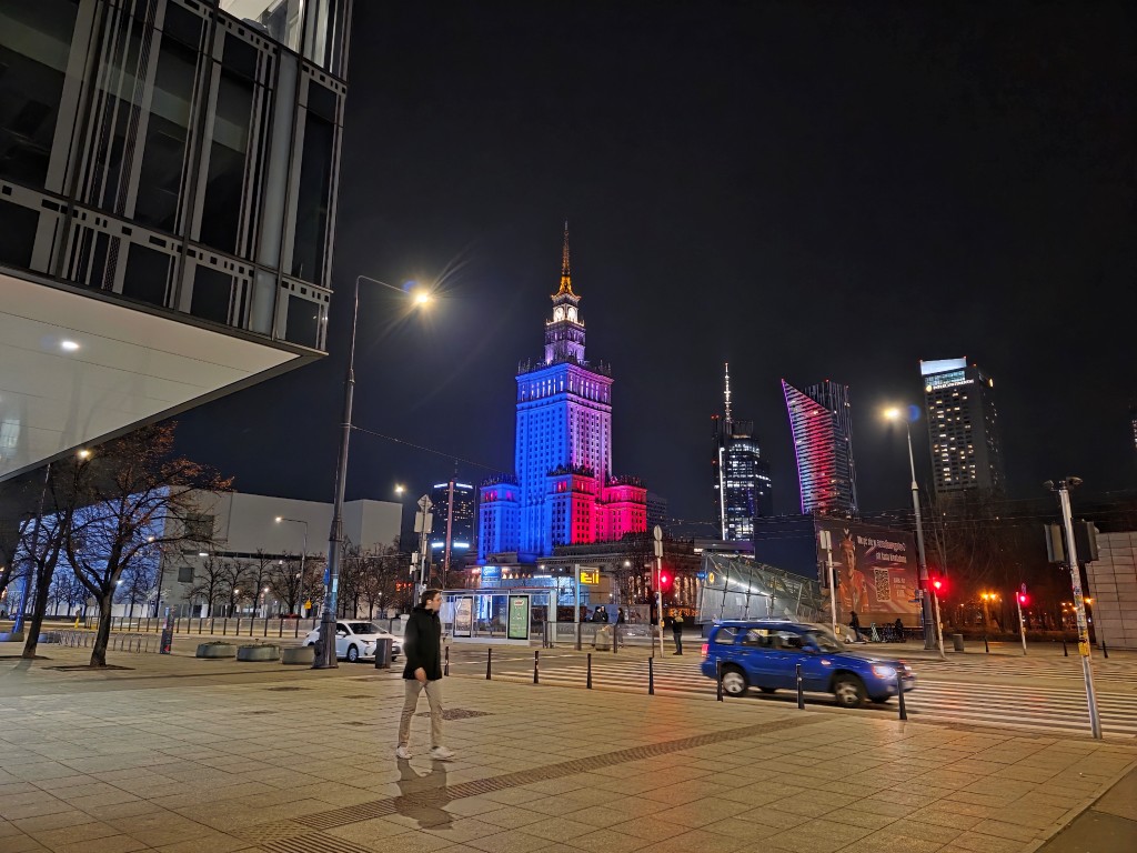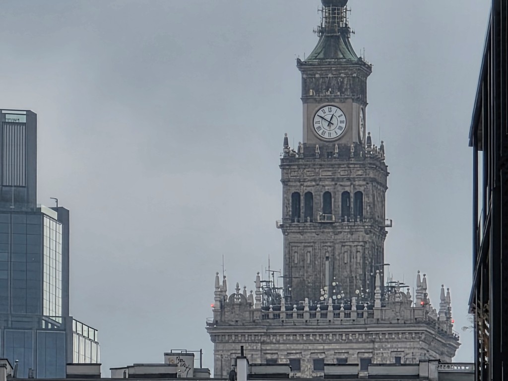 10-krotne przybliżenie cyfrowe wygląda akceptowalnie – z pewnością nie będzie problemu, by z poziomu telefonu je komuś pokazać. Im dalej, tym gorzej. 100-krotny, a nawet 50-krotny zoom to mrzonka i może zobaczycie układ wskazówek na pałacu kultury, ale po przetwarzaniu będzie wyglądało to niczym wczesne “rysunki” sztucznej inteligencji. Do 30-krotnego przybliżenia fotografie wyglądają dobrze. Samsung ma też przyjemny tryb portretowy, który potrafi dobrze odciąć postać i zachować detale na twarzy, choć tu także podgryzła go w tym roku konkurencja.