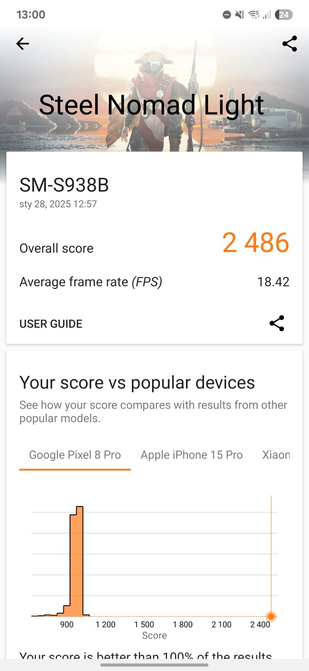 Z kolei w Geekbench 6 część procesorowa potrafi być lepsza od OnePlusa 13 (Single Core) i od MediaTeka (Multi Core), ale nigdy jednocześnie. Przy tym smartfon w znakomity sposób utylizuje prędkości pamięci – zarówno tej na pliki, jak i tej operacyjnej. Nie ma jednoznacznego zwycięzcy, ale Samsung w moich testach nim nie został. Po urządzeniu z dopiskiem Ultra spodziewałbym się lepszych wyników od smartfonów bez podobnego dopisku.