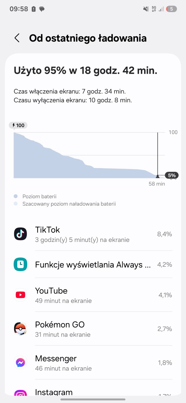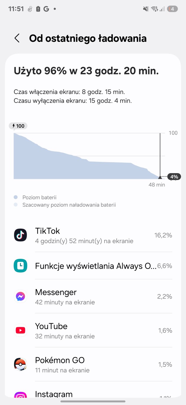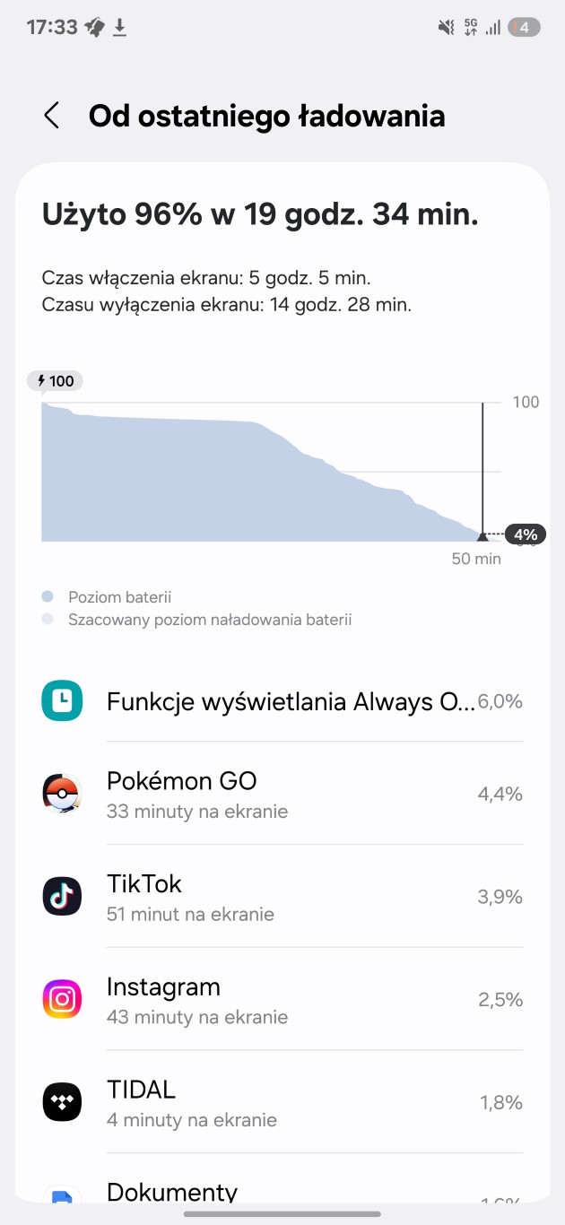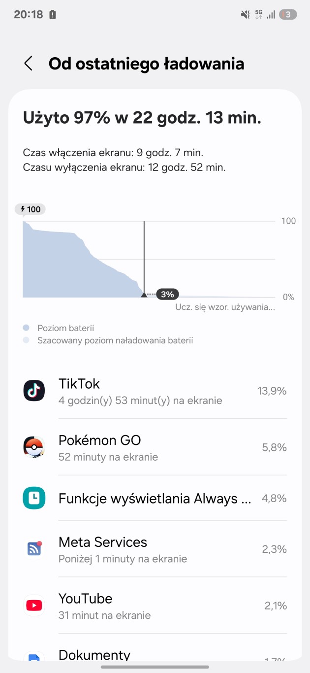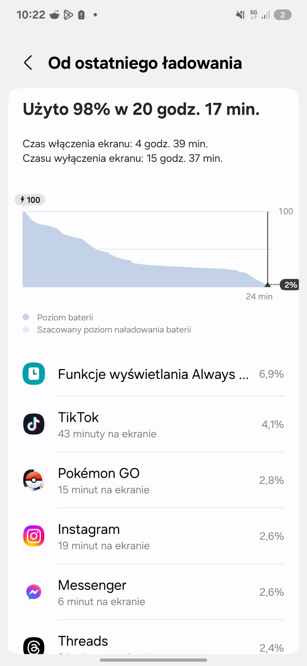 Samsung od modelu S20 stosuje akumulator o pojemności 5000 mAh dla modeli Ultra. Przez ten czas zmieniały się układy obliczeniowe oraz podzespoły i to mogą wpłynąć na czas pracy. Jednocześnie producent zadbał o optymalizację systemu i to jest klucz do zwycięstwa… przez większość czasu. Co istotne, korzystałem z telefonu w najwyższej rozdzielczości oraz z adaptacyjną częstotliwością odświeżania.