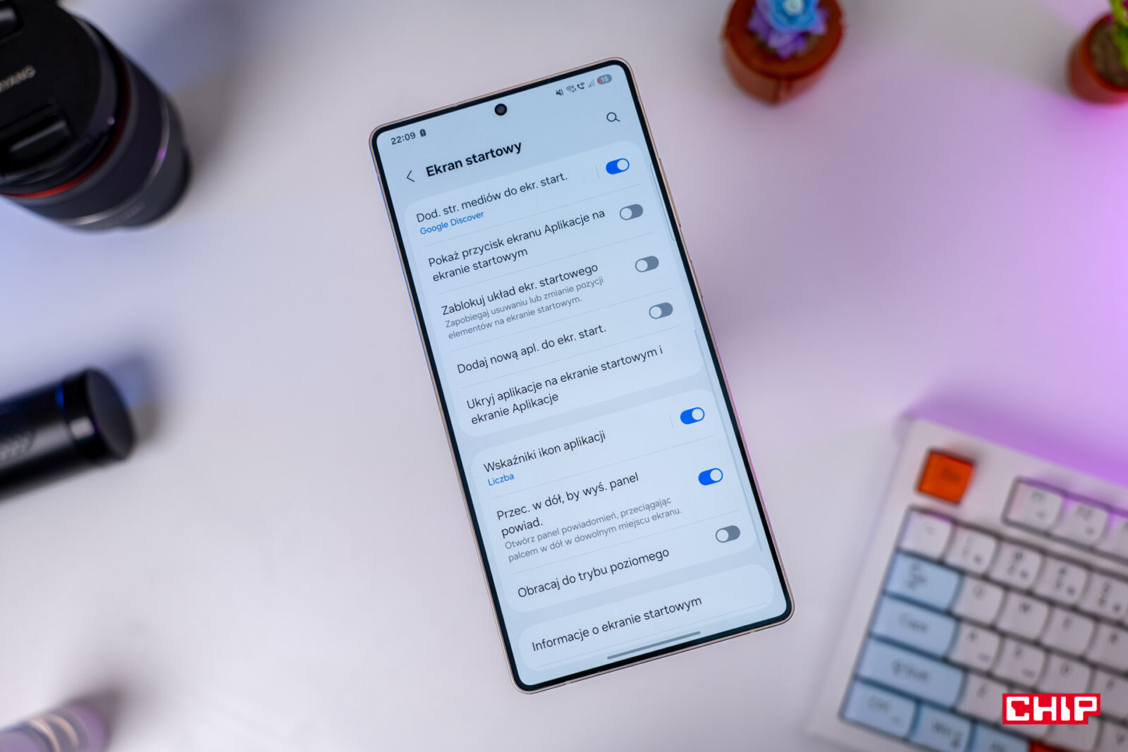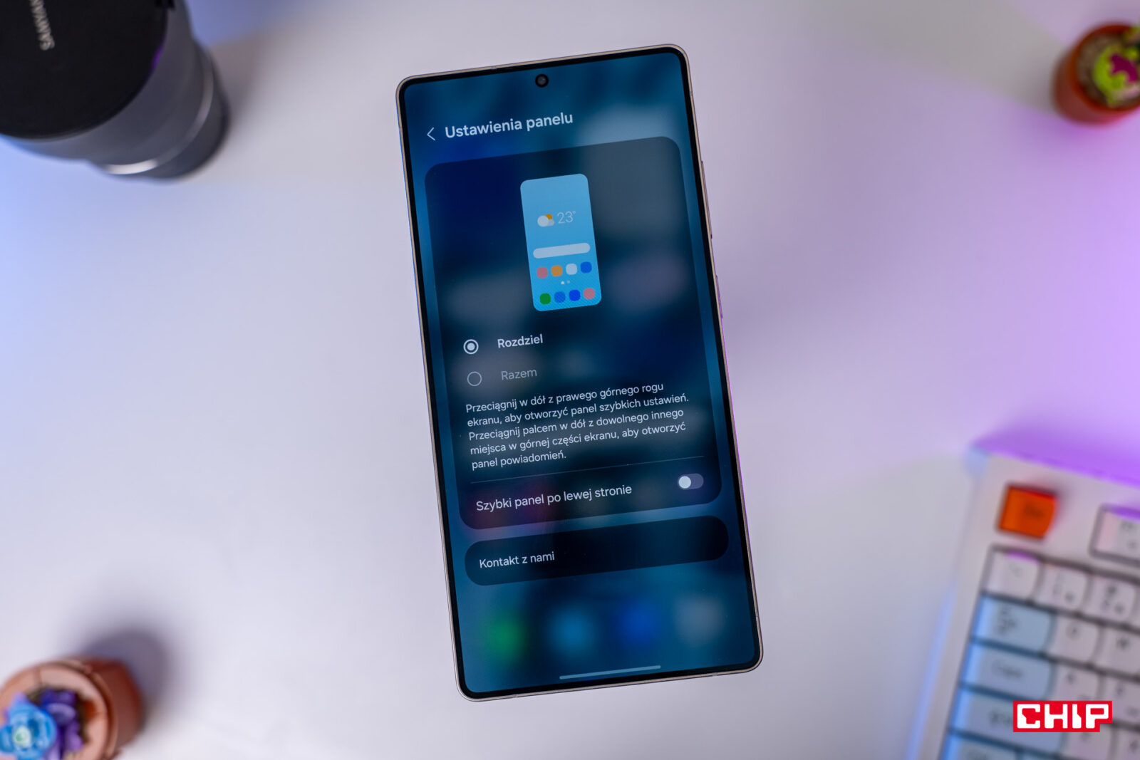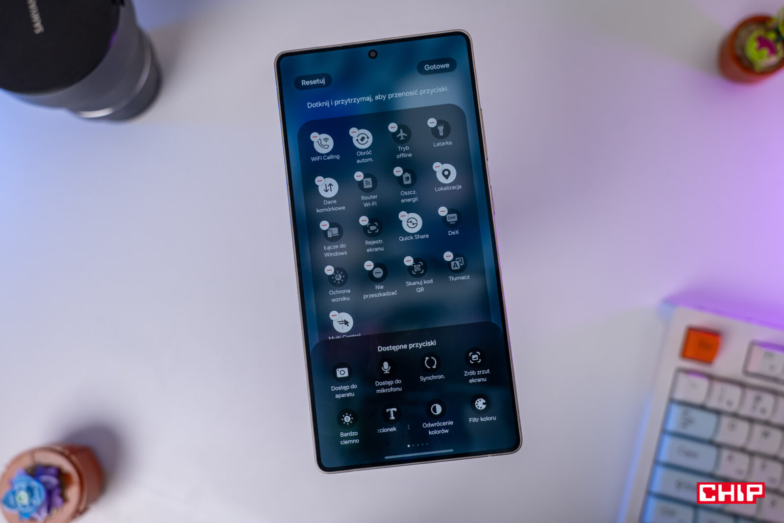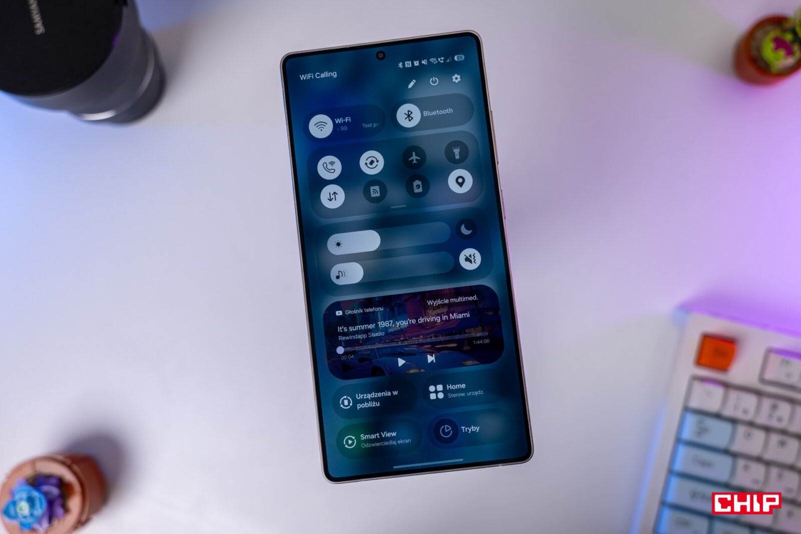 Tego samego nie mogę jednak powiedzieć o (na szczęście opcjonalnym) rozdzieleniu centrum kontroli od panelu powiadomień. Wygląda to, jakby Samsung podejrzał chińskie marki, które podejrzały Apple. Na obronę koreańskiego producenta warto przyznać, że ma czytelny podział na sekcje i jeśli chcemy ustawić wyżej widżet odtwarzacza muzyki, to nie ma ku temu przeciwskazań. Szkoda, że przy okazji z paska powiadomień zniknęły ikony alarmu, NFC i tym podobnych informacyjnych rozwiązań. Aby je zobaczyć, musimy rozwinąć pasek powiadomień.