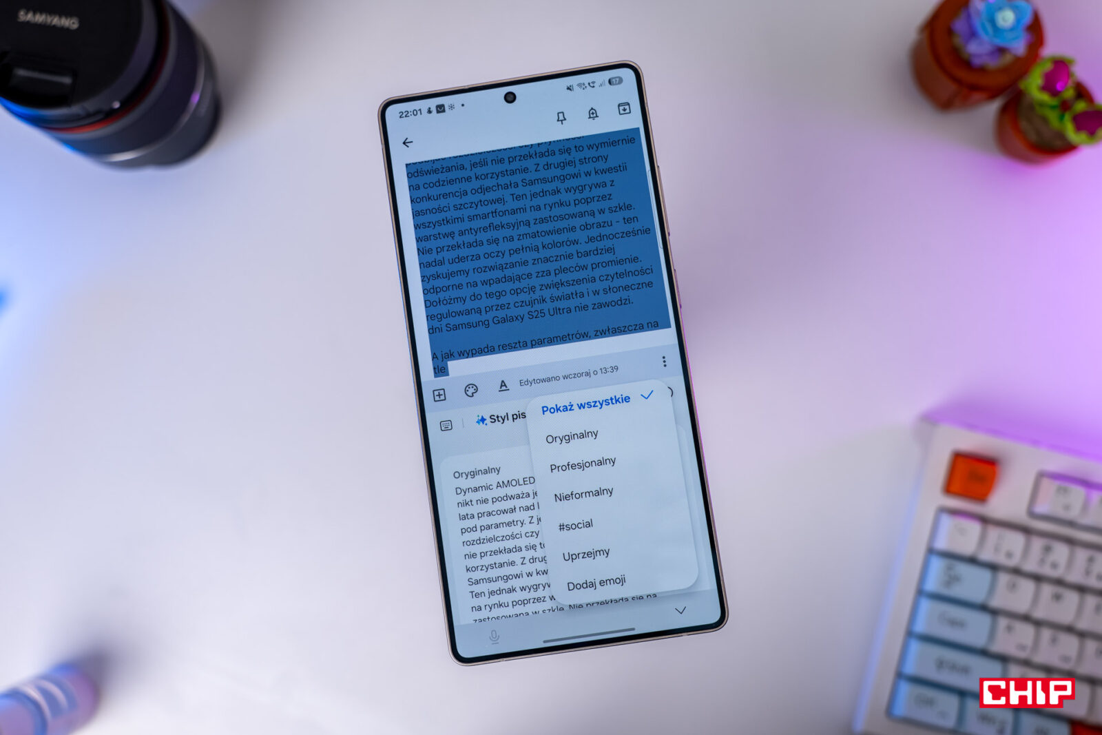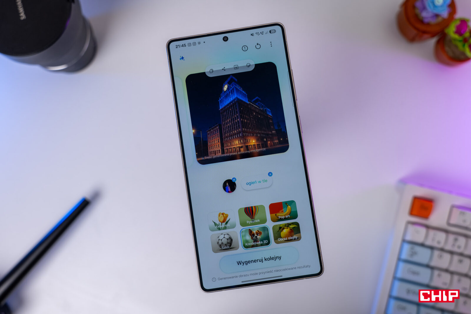 Czy istnieją różnice w przetwarzaniu na dysku w porównaniu do przetwarzania wyłącznie na urządzeniu? Części rzeczy nie zrobimy bez dostarczania informacji do sieci, jak na przykład streszczanie treści w przeglądarce. Jednocześnie przetwarzanie tłumaczeń (po pobraniu pakietów językowych), transkrypcja głosu i nagrań czy obróbki zdjęć mogą odbywać się na telefonie. W przypadku tej ostatniej odczujemy różnicę, gdy zaufamy wyłącznie wersji offline. To, co jest niezmiennie przyjemne, to sugestie zaszyte wewnątrz systemu, które proponują użycie narzędzi, gdy te faktycznie mogą się przydać. Te nie tylko kryją się za ikoną gwiazdek, ale też potrafią pojawić się w galerii czy po zaznaczeniu tekstu. W takich aspektach Samsung jest o lata świetlne przed innymi producentami.