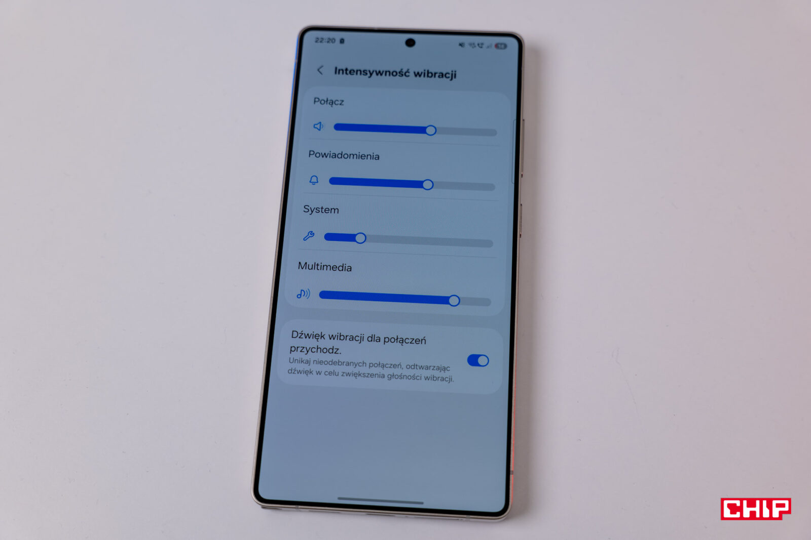 Nie pamiętam już czasów, kiedy Samsung wymiernie poprawiłby wrażenia ze swojego silnika wibracji. Tak naprawdę mam wrażenie, że od czasów Galaxy S22 w tej kwestii niewiele się zmieniło. W międzyczasie konkurencji udało się stworzyć rozwiązania cichsze i lepiej reagujące na dotknięcia ekranu. Nie oznacza to, że rozwiązanie Samsunga jest złe – po prostu istnieją lepsze. To, czego jednak nie można odmówić producentowi, to szerokiego wachlarza ustawień wibracji zarówno dla połączeń, powiadomień, jak i zwykłych interakcji dotykowych. Szkoda, że rozwiązanie nie ma tak dużej mocy, jak w OnePlusach czy Xiaomi, ale dorównuje im precyzją. Jest jednak przy tym ciut głośniejsze.