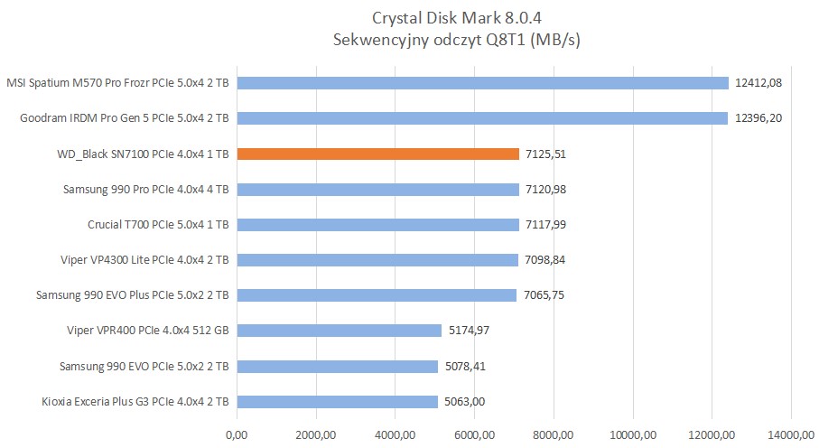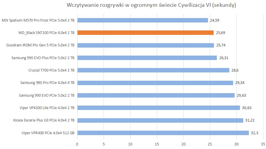 O ile kopiowanie plików zawsze jednoznacznie pokazuje poziom wydajności dysków, tak same aplikacje są już nieco bardziej skomplikowane, bo jeszcze bardziej angażują w procesie zarówno pamięć operacyjną, jak i procesor. Jednak nawet pomimo tego wysoką wydajność WD_Black SN7100 widać, jak na dłoni.