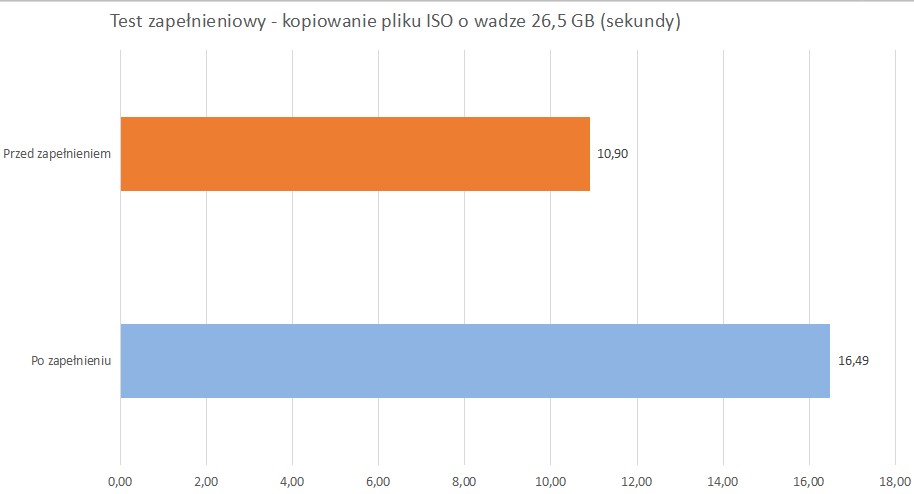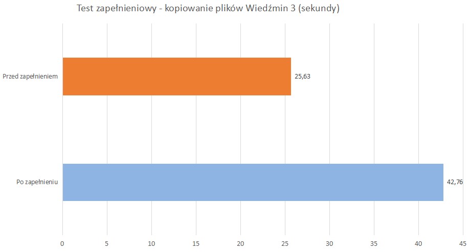 Wykresy z procesu kopiowania, które przedstawiają zmieniający się transfer w ciągu całego procesu kopiowania plików zarówno po zapełnieniu, jak i przed zapełnieniem.