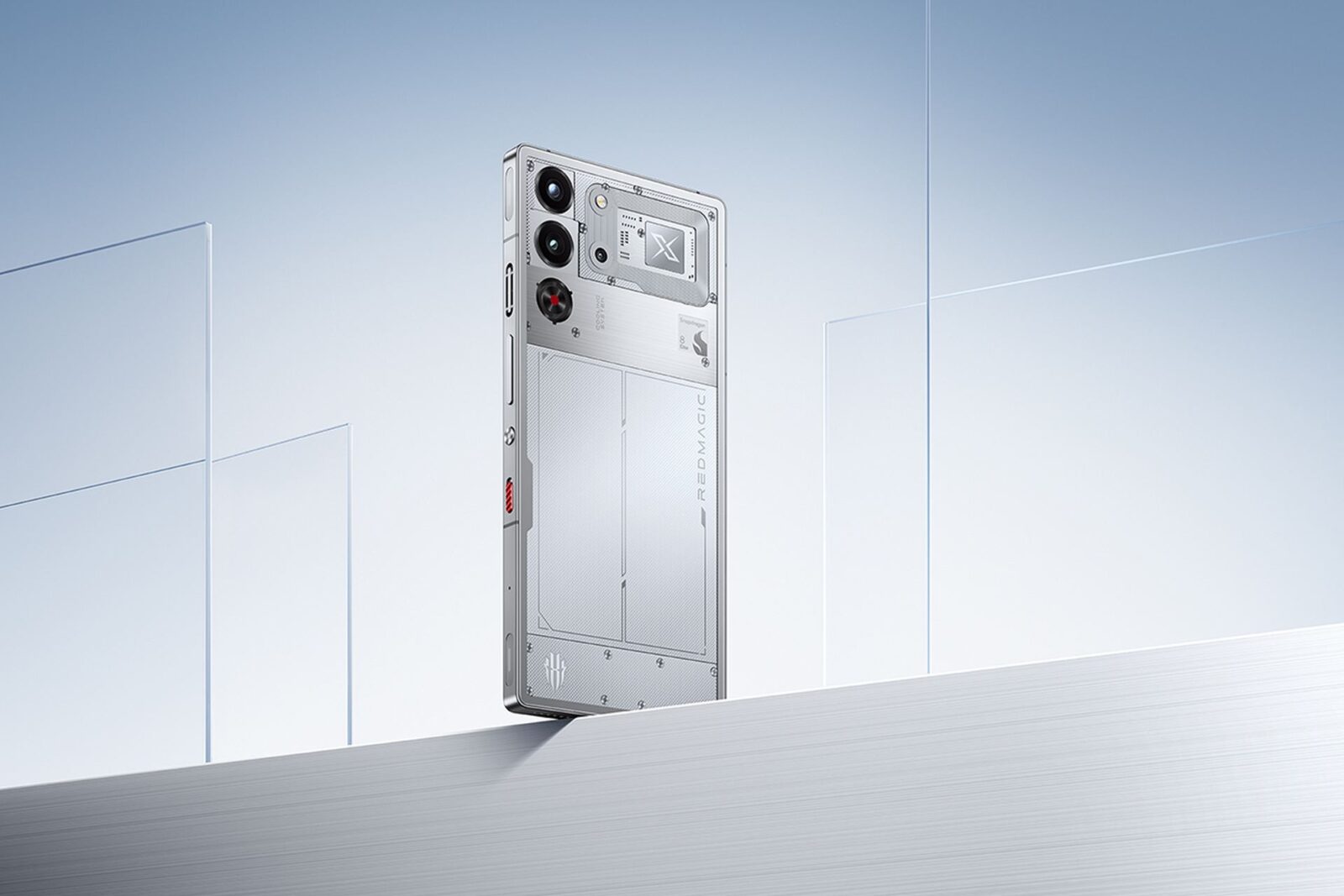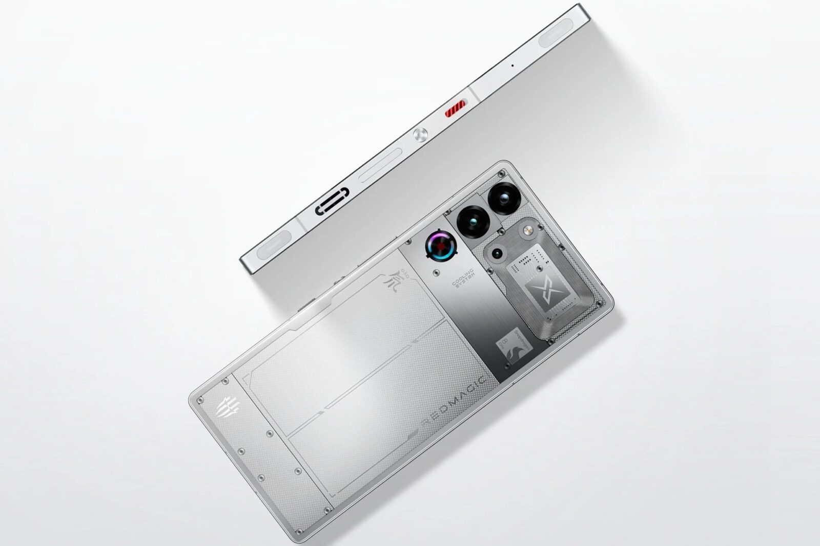 Redmagic 10 Pro z pewnością wyróżni się z tłumu. Niekoniecznie ze względu na logo wyglądającego niczym Twitter po przejęciu przez Elona Muska, a przez swoją kanciastość i mnogość motywów goszczących na tylnej części obudowy. Tę wykonano ze szkła, a do tego udekorowano wylotem powietrza, z którego korzysta wbudowany wiatrak. Ten jednak stanowi tylko część systemu chłodzenia ICE-X, który poza aktywnym wentylatorem oferuje komorę parową o powierzchni 12 tysięcy mm², stop płynnego metalu w newralgicznych miejscach obudowy oraz żel termoprzewodzący pomiędzy warstwami miedzi i grafenu.