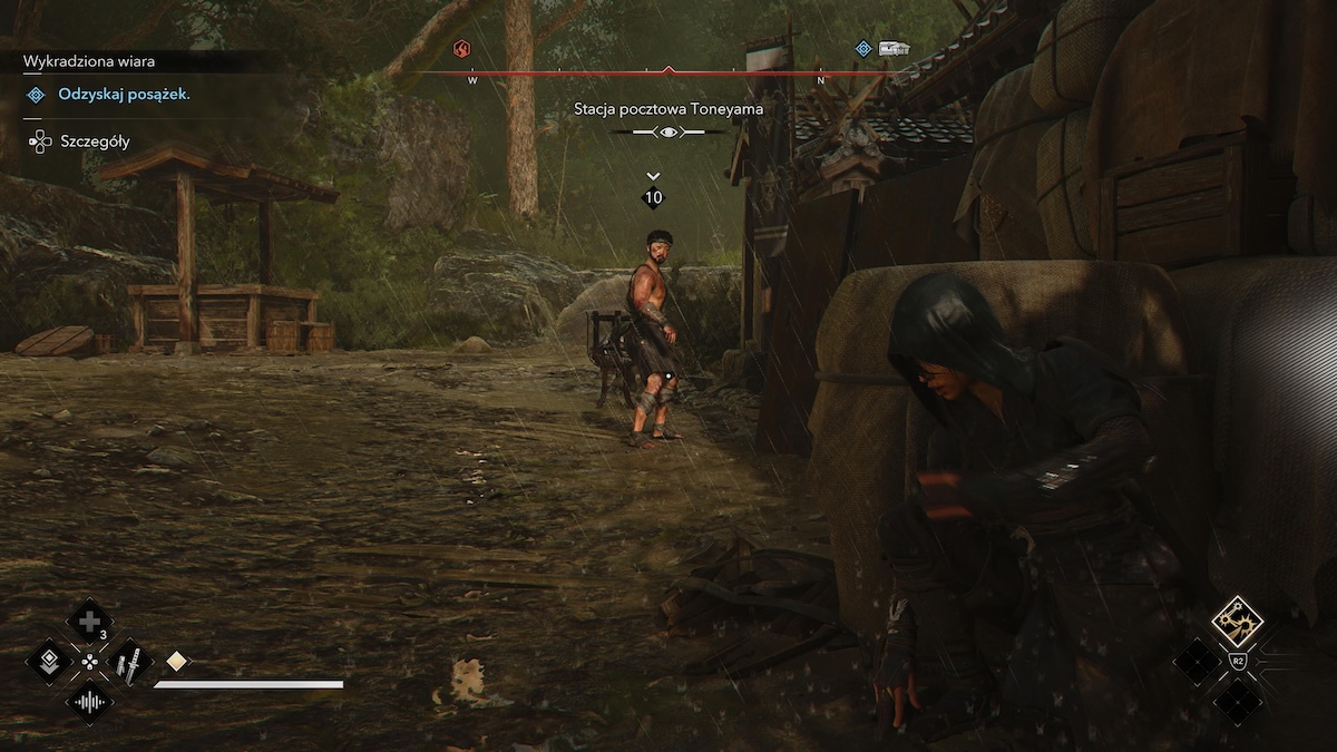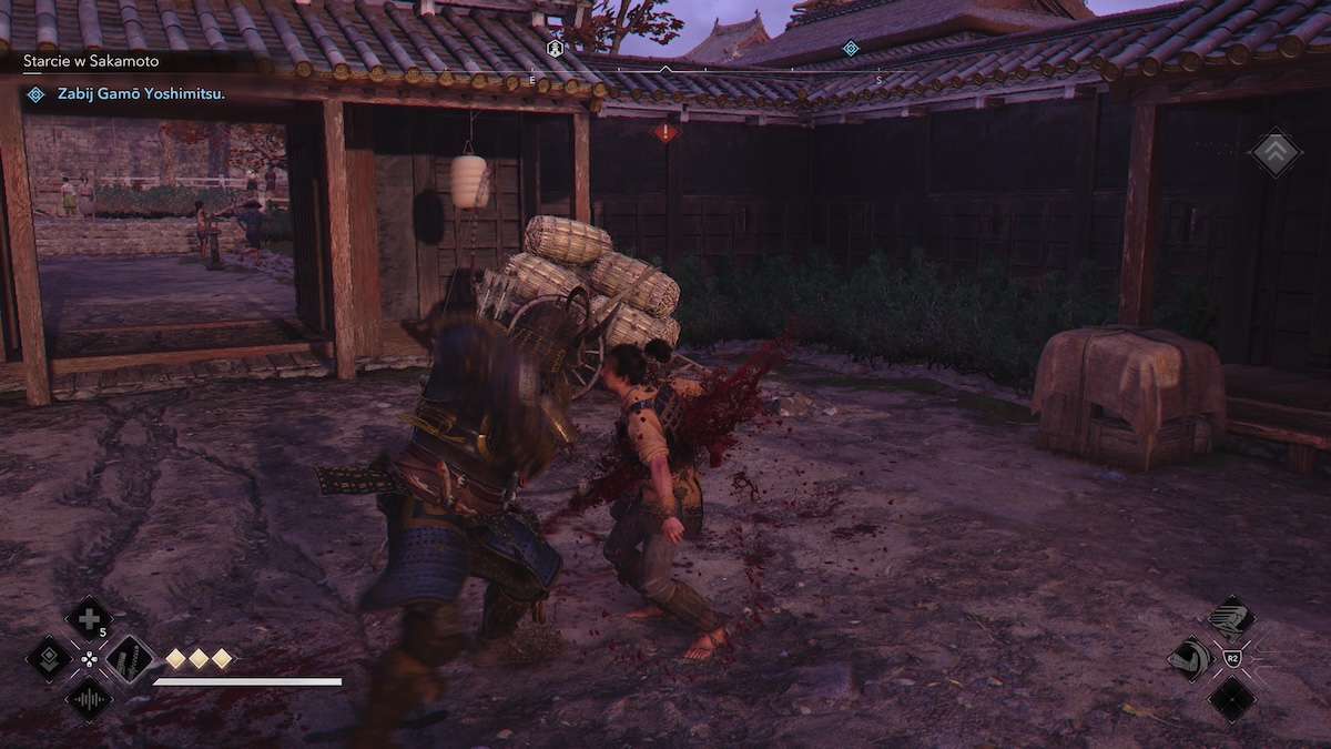 Jak to zazwyczaj jednak bywa, coś za coś. Yasuke jest wolny, jego gabaryty oraz pokaźna zbroja sprawiają, że nie jest najlepszym wyborem do skradania — i właściwie nie potrafi nawet eliminować przeciwników po cichu, tylko ostentacyjnie wbija wielką katanę w środek korpusu swojego rywala. Samuraj jest w stanie wspiąć się na małych wysokościach, ale nie ma szans, żeby zdobył jakikolwiek punkt widokowy… ani z niego zgrabnie zszedł, gdyż jest zbyt ciężki i wielki na skok wiary. Taki akt odwagi skutkuje rozwaleniem stogu siana i bólem pleców u głównego bohatera.