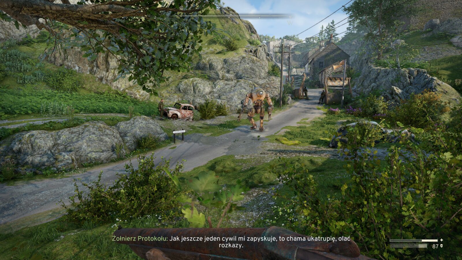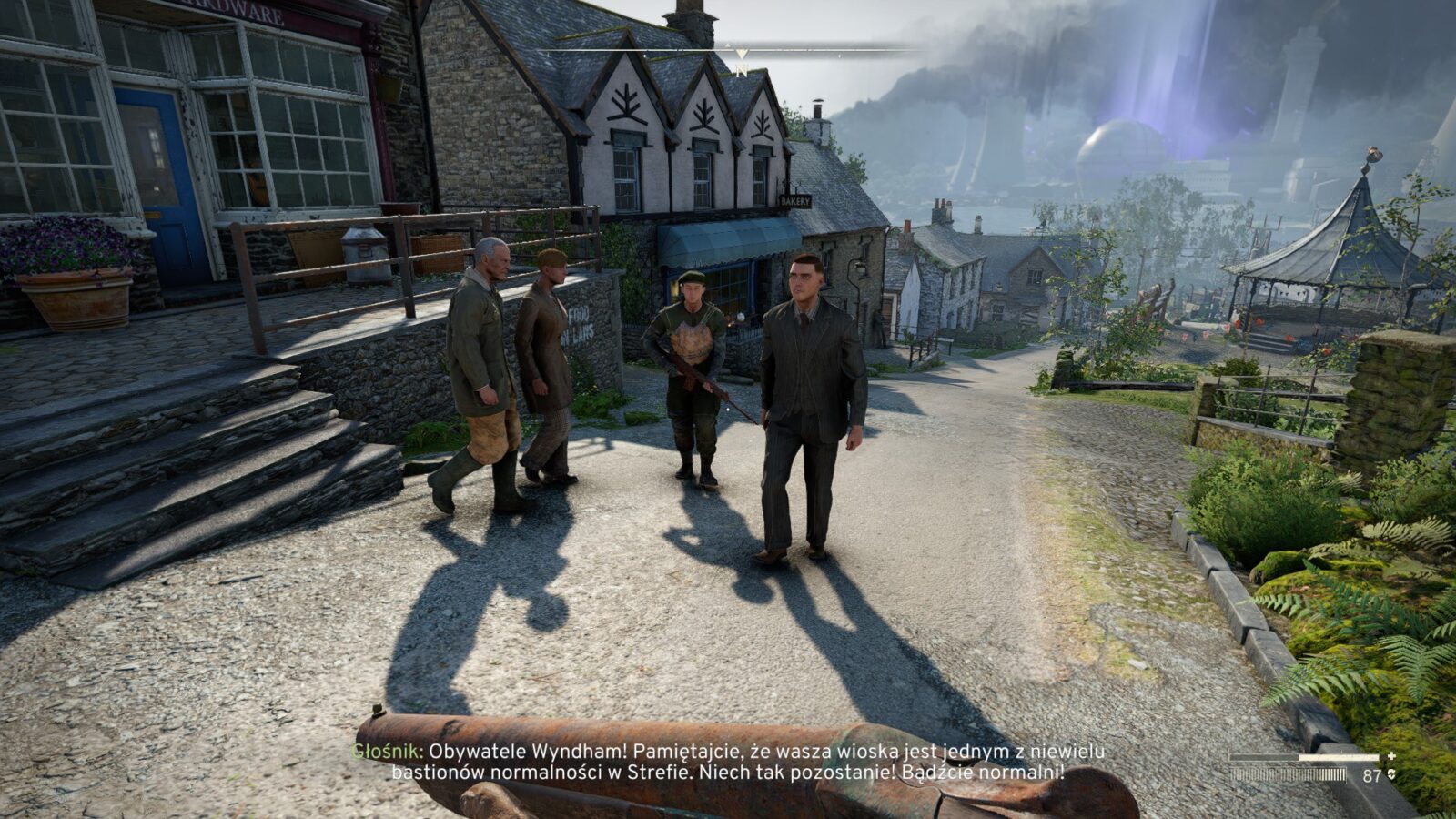 Atomfall w niczym nie przypomina świata post-apo – i nim nie jest. Owszem, na terenie Wyndham oraz w przyległych obszarach mamy wiele opuszczonych domów, gdzieniegdzie same ich ruiny, można nawet zauważyć od czasu do czasu mecha puszczającego z dymem jakieś zabudowania, ale większość naziemnych krajobrazów jest po prostu urocza. Miła angielska wieś jest wciąż pełna mieszkańców, którzy zajmują się codziennymi czynnościami – od pracy w przydomowych ogródkach po spacery na plaży – a przyroda bujnie kwitnie pośród wzgórz.
