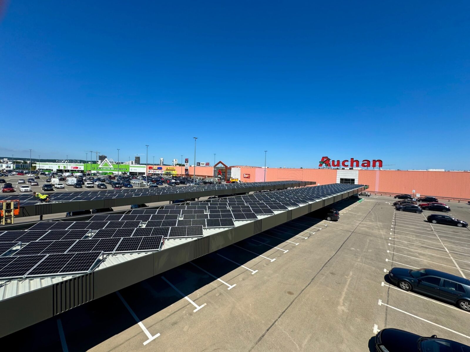 Auchan uruchomił właśnie w Rumi ekologiczną wiatę parkingową typu carport. To nie tylko sposób ochrony auta przed niekorzystnymi warunkami pogodowymi. Wiata jest zasilana energią z modułów fotowoltaicznych o mocy ponad 200 MWh rocznie i oferuje miejsca parkingowe dla łącznie 100 samochodów. Wyposażona jest też w ładowarki o mocy od 44 do 330 kWh. Ważny w tym kontekście wydaje się fakt, że rozwiązanie umożliwia jednoczesne ładowanie 6 samochodów elektrycznych (4 szybkie AC/DC i 2 wolne ładowania). Resztę miejsc mogą jednak śmiało wykorzystać posiadacze zwykłych samochodów. Klienci mają do dyspozycji trzy metody płatności za ładowanie: aplikację Elocity, kartę RFID lub terminal płatniczy.