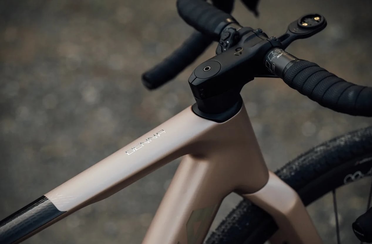 Jednak Orbea Denna to nie tylko zaawansowany napęd, ale też rama z włókna węglowego o dopracowanej geometrii, która ma zapewniać wygodę zarówno podczas długich tras szosowych, jak i jazdy w trudniejszym terenie. Ta rama oferuje duży prześwit na opony do 50 mm (zarówno na wąskie opony szosowe, jak i szersze opony gravelowe), dłuższe tylne widełki, nisko osadzony suport i rozmiarowo dostosowany trail widelca, które poprawiają stabilność i prowadzenie oraz możliwość zamocowania błotników, dwóch bidonów oraz dodatkowych akcesoriów, dzięki punktom montażowym.