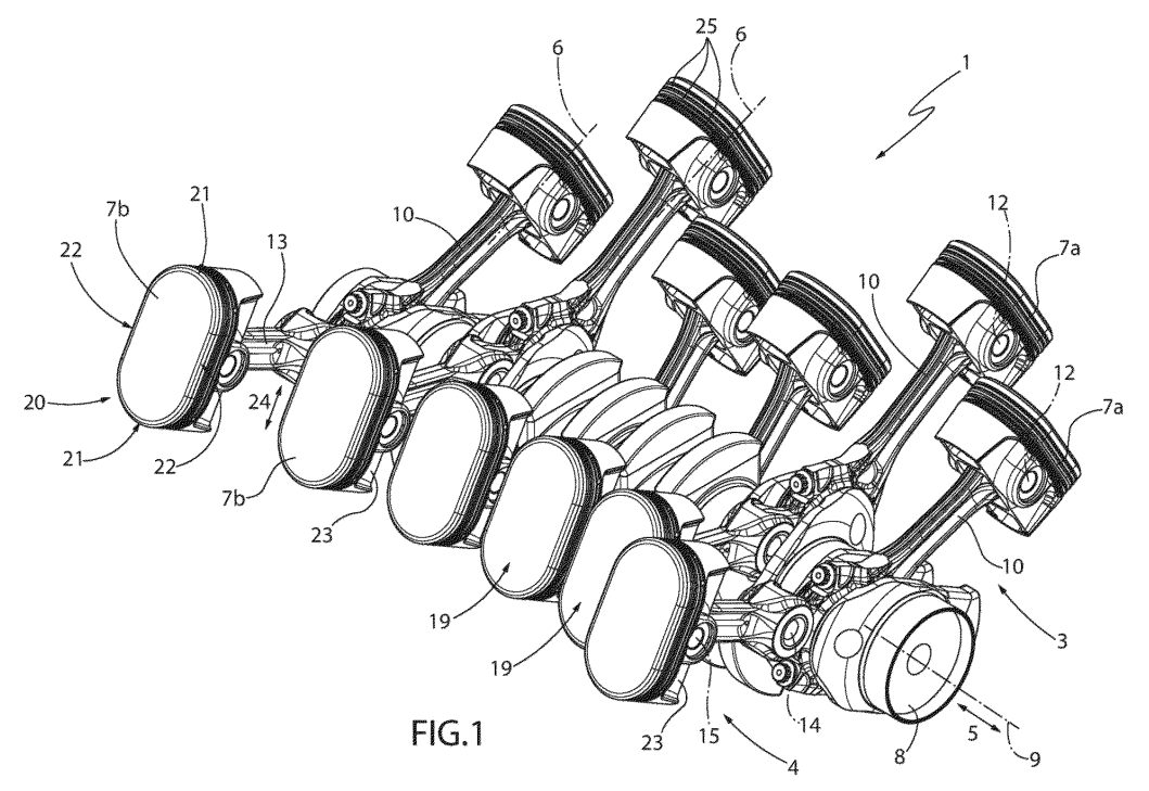 Patent dotyka jednak nie tylko samego kształtu cylindrów w V12, bo opisuje także unikalny układ korbowodów, w którym dwa przeciwległe tłoki współdzielą jedno łożysko wału korbowego. Takie rozwiązanie upraszcza mechanikę wewnętrzną jednostki napędowej, zmniejsza tarcie oraz zwiększa sprawność mechaniczną, a to akurat może przełożyć się na wyższą moc i lepszą ekonomię paliwową. Innymi słowy, taki nowy silnik Ferrari byłby nie tylko wydajniejszy oraz efektywny paliwowo, ale też bardziej kompaktowy i na dodatek płynnie działający. Jednak innowacyjne rozwiązanie niesie także wyzwania, a w tym skomplikowaną produkcję, wysokie koszty wdrożenia oraz konieczność zapewnienia długoterminowej niezawodności tego typu konstrukcji, co może być szczególnym wyzwaniem.