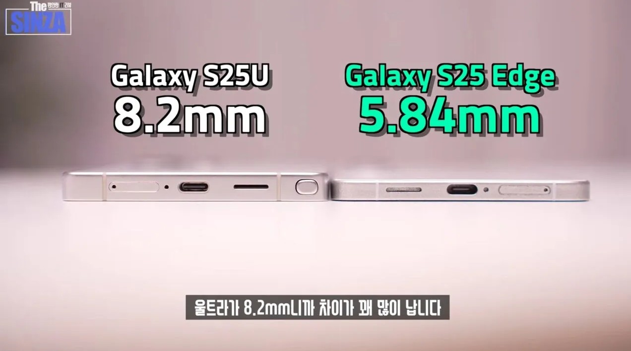 Atrapa S25 Edge została też porównana z Galaxy S25 Ultra i oczywiście już na pierwszy rzut oka widać duże różnice. W wymiarach to 8,2 mm grubości kontra 5,84 mm. Smukły model Samsunga będzie więc znacznie cieńszy od ultraflagowca, ale jeśli wierzyć przeciekom, Apple i jego iPhone 17 Air go przebije, choć dużo też zależy od specyfikacji. Na pewno pod względem aparatów Samsung wygra, bo Edge ma podwójną konfigurację, podczas gdy Air dostanie tylko jeden aparat.