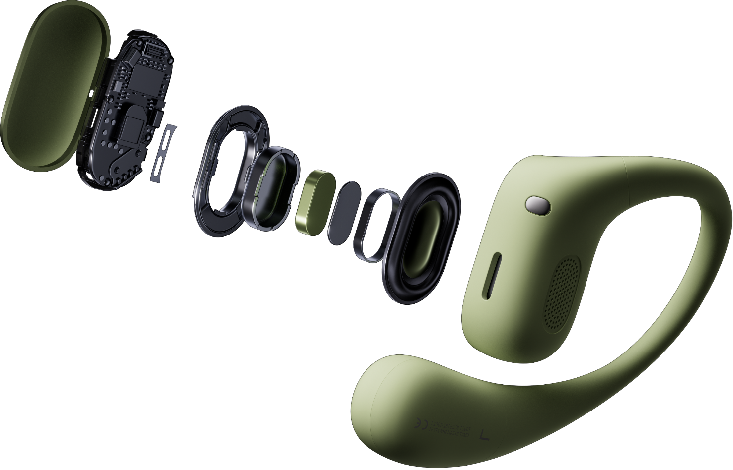 Tych słuchawek jeszcze nie ma – zostały dopiero zapowiedziane. Czego możemy się spodziewać? Będą to słuchawki zauszne, o konstrukcji otwartej, których sercem będą przetworniki o rozmiarach 17×12 mm, wspomagany algorytmami dynamicznego basu i adaptacyjnej głośności, by uzyskać wysoką jakość dźwięku. Pałąk łączący część z przetwornikiem wykonany będzie ze stopu niklu i tytanu, a powierzchnia słuchawek wykończona będzie w większości miękkim płynnym silikonem, bardzo komfortowym dla skóry.