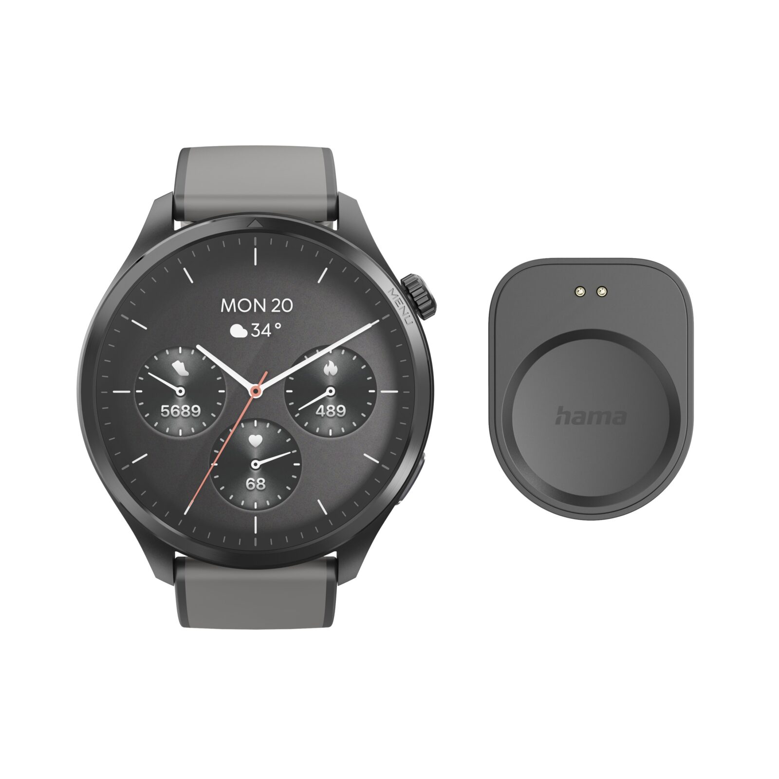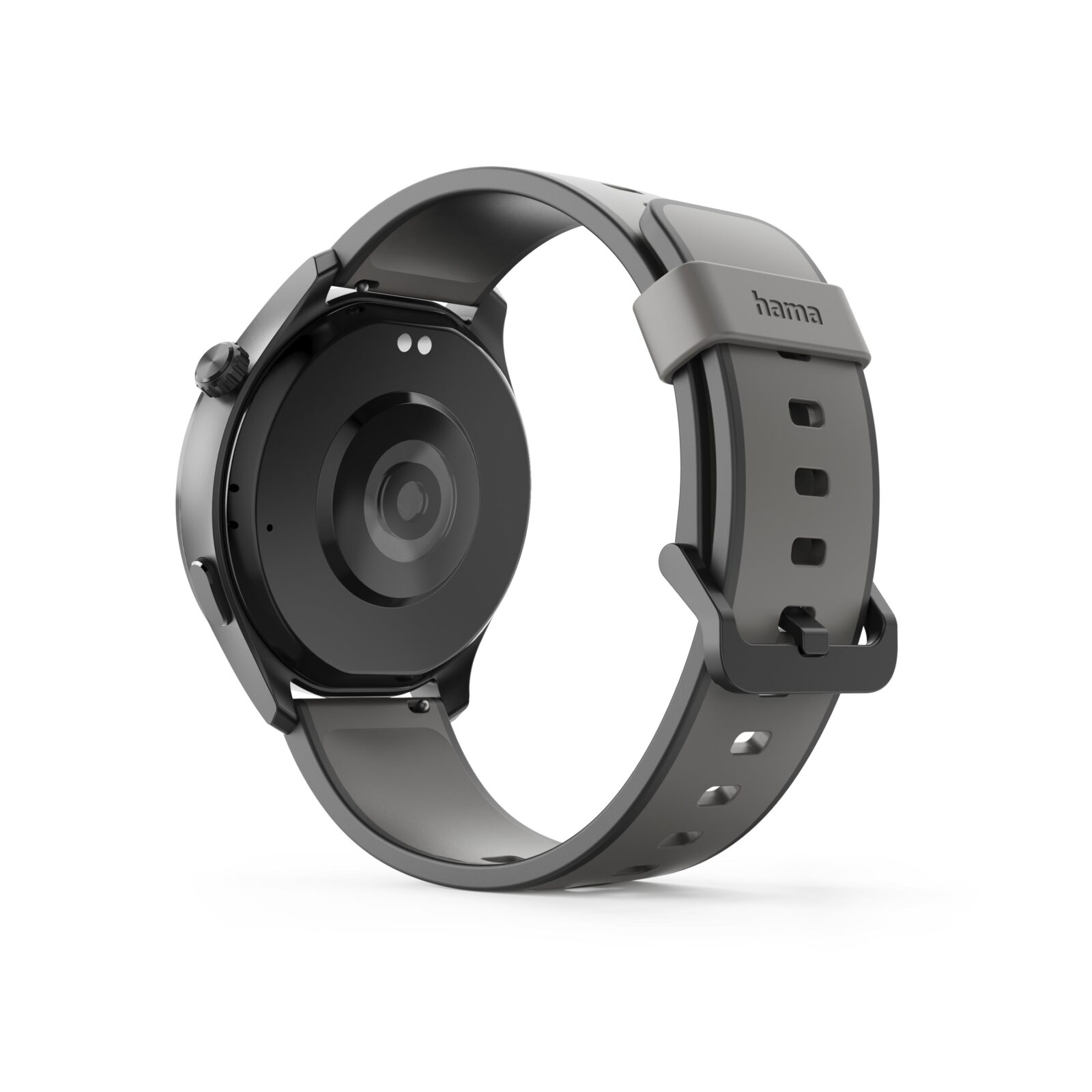 Hama 9000 to designerska propozycja dla fanów klasyki, lubiących tradycyjną okrągłą kopertę i stonowaną ciemnoszarą kolorystykę, nadającą zegarkowi elegancji. Wymiary wynoszą: długość 5,3 cm, szerokość 4,7 cm i wysokość 1,4 cm, zaś waga 53 g. Natomiast w przypadku gumowej opaski są to: szerokość 2,2 cm, maksymalna długość 22 cm, a minimalna 14,7 cm. Sama koperta została wykonana z redukującego masę włókna szklanego, a pierścień oraz przyciski z nierdzewnej stali, co wpływa zbawiennie na wytrzymałość. Zastosowane w wyświetlaczu szkło 2.5D Panda Glass zapewnia optymalną odporność na zarysowania i uszkodzenia mechaniczne. Dzięki takim materiałom w budowie zegarka nie musimy bać się o jego wytrzymałość.
