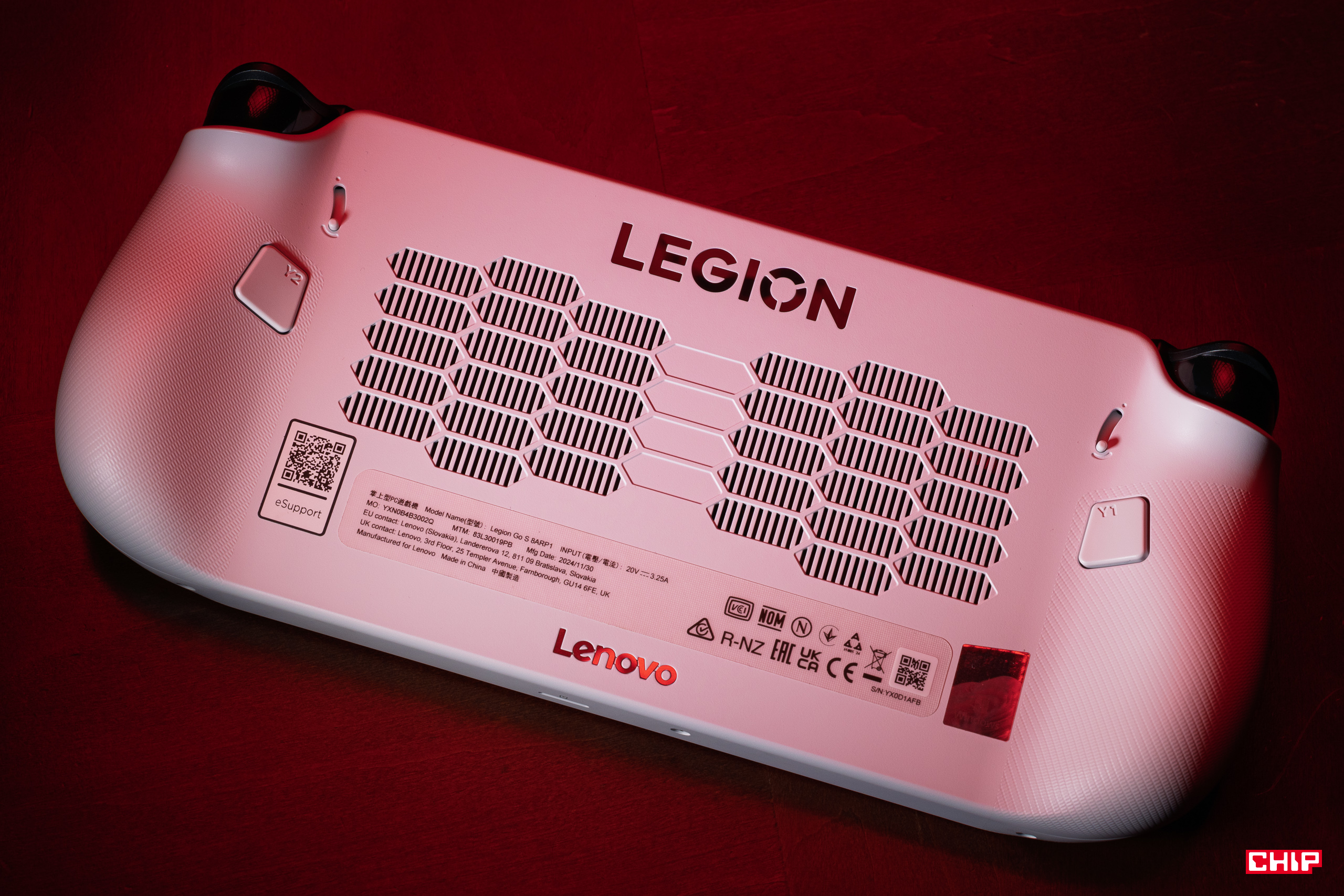 Górny panel to w zasadzie pad do Xboxa, przedzielony ekranem – układ gałek i przycisków jest niemal identyczny, poza 4 małymi przyciskami obok ekranu – dwa z nich są odpowiednikami przycisków z pada, a dwa wywołują funkcje właściwe tylko dla Legiona Go S. Poniżej prawej manetki umieszczony został mikroskopijny touchpad (przydaje się, mimo dotykowego ekranu), a na samym dole obok ekranu znalazło się miejsce na głośniki.
