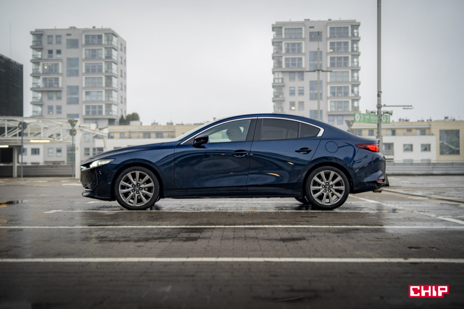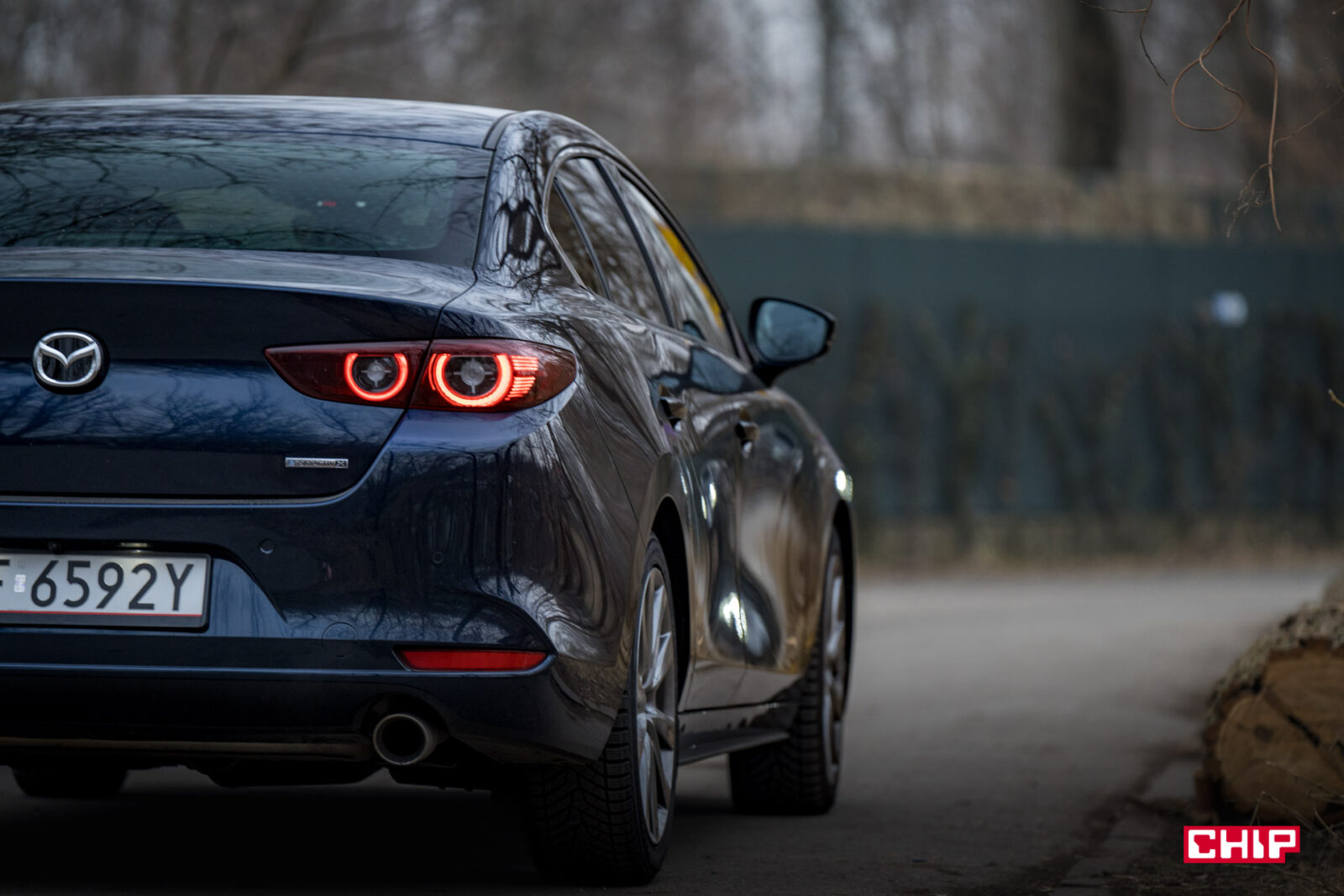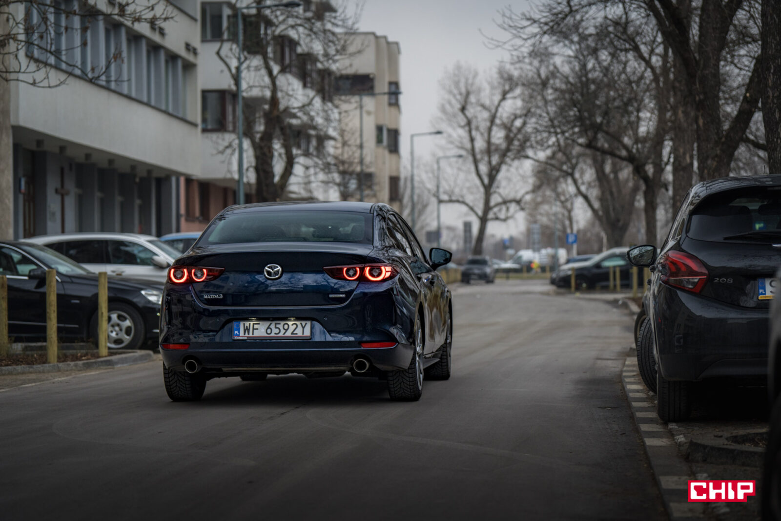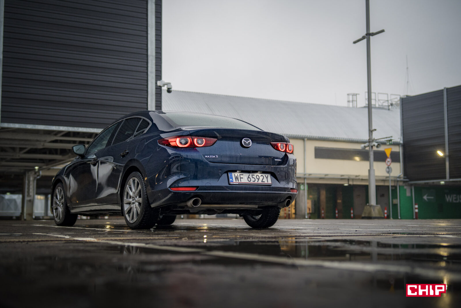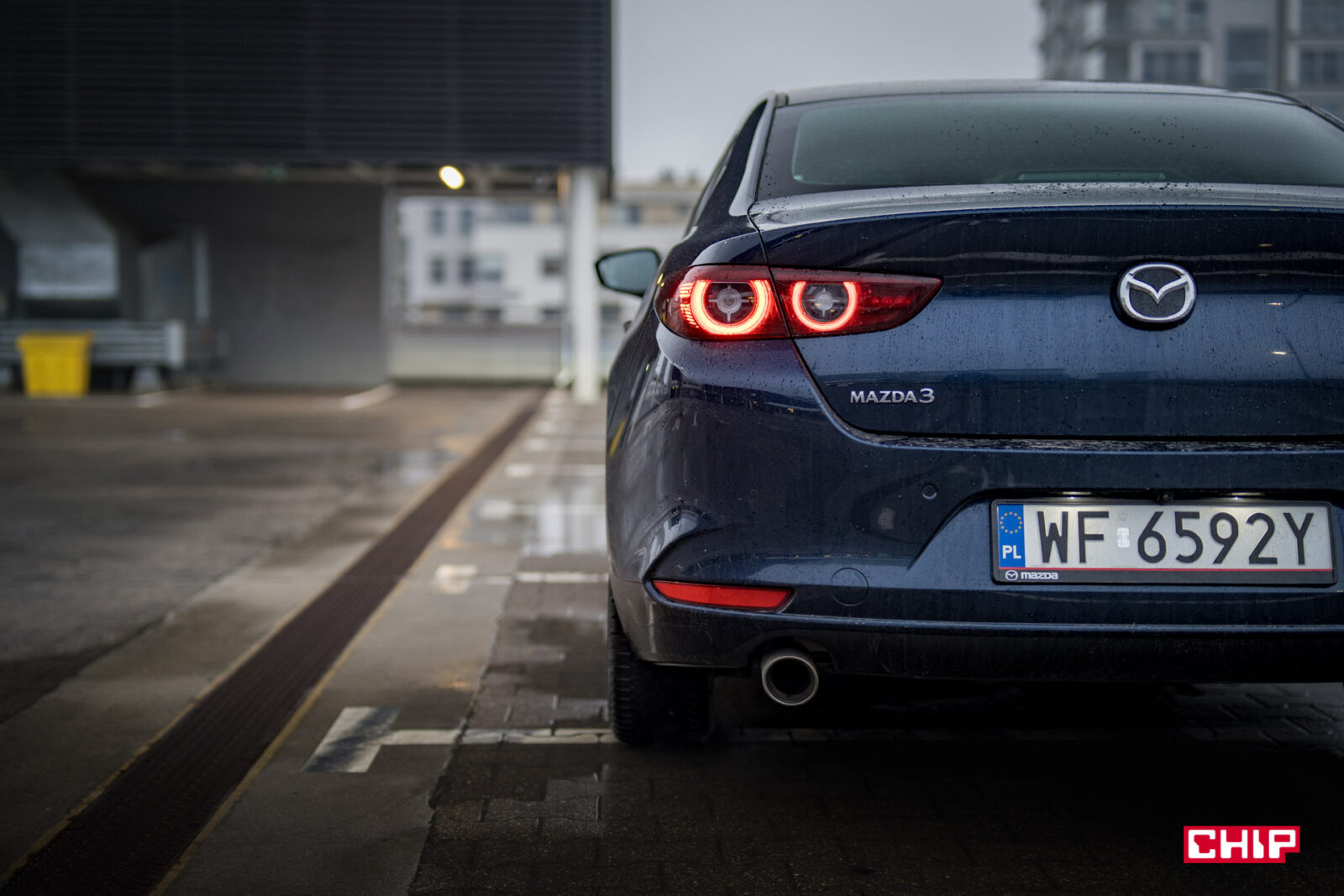 Mazda 3 wizualnie nie zmieniła się od 2019 roku, ale szczerze mówiąc, nie uważam, żeby było to konieczne, w końcu po co poprawiać coś, co jest piękne? Mamy tutaj płynne linie, eleganckie przetłoczenia, bez żadnych szaleństw, sama elegancja. Auto wyposażono w aerodynamiczne elementy, ale są zrobione dyskretnie, ze smakiem. Coś, co niestety nie jest standardem na rynku. Jeżeli szukacie eleganckiego, nie krzykliwego sedana, Mazda 3 ucieszy Wasze oczy i zmysły.