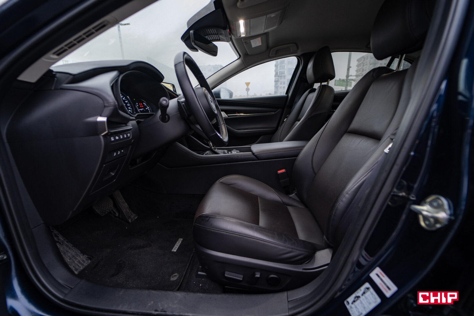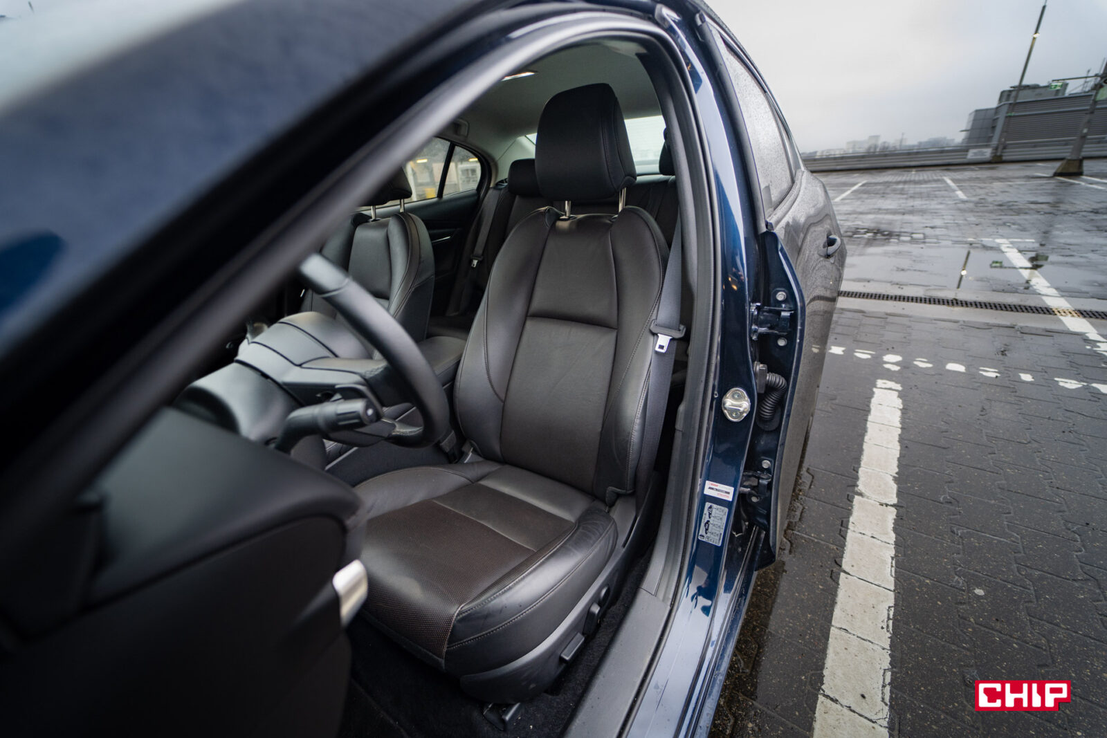 Elegancja Mazdy 3 z zewnątrz to nic przy tym, co zobaczymy w środku. To nie jest stosunkowo drogie auto, a ilość skórzanych elementów wyposażenia Executive robi wrażenie. Wszystko to jest bardzo dobrze wykonane i nie czuć tutaj, tak jak w wielu innych autach ze średniej lub niższej półki, że jest to skóra gorszej jakości.