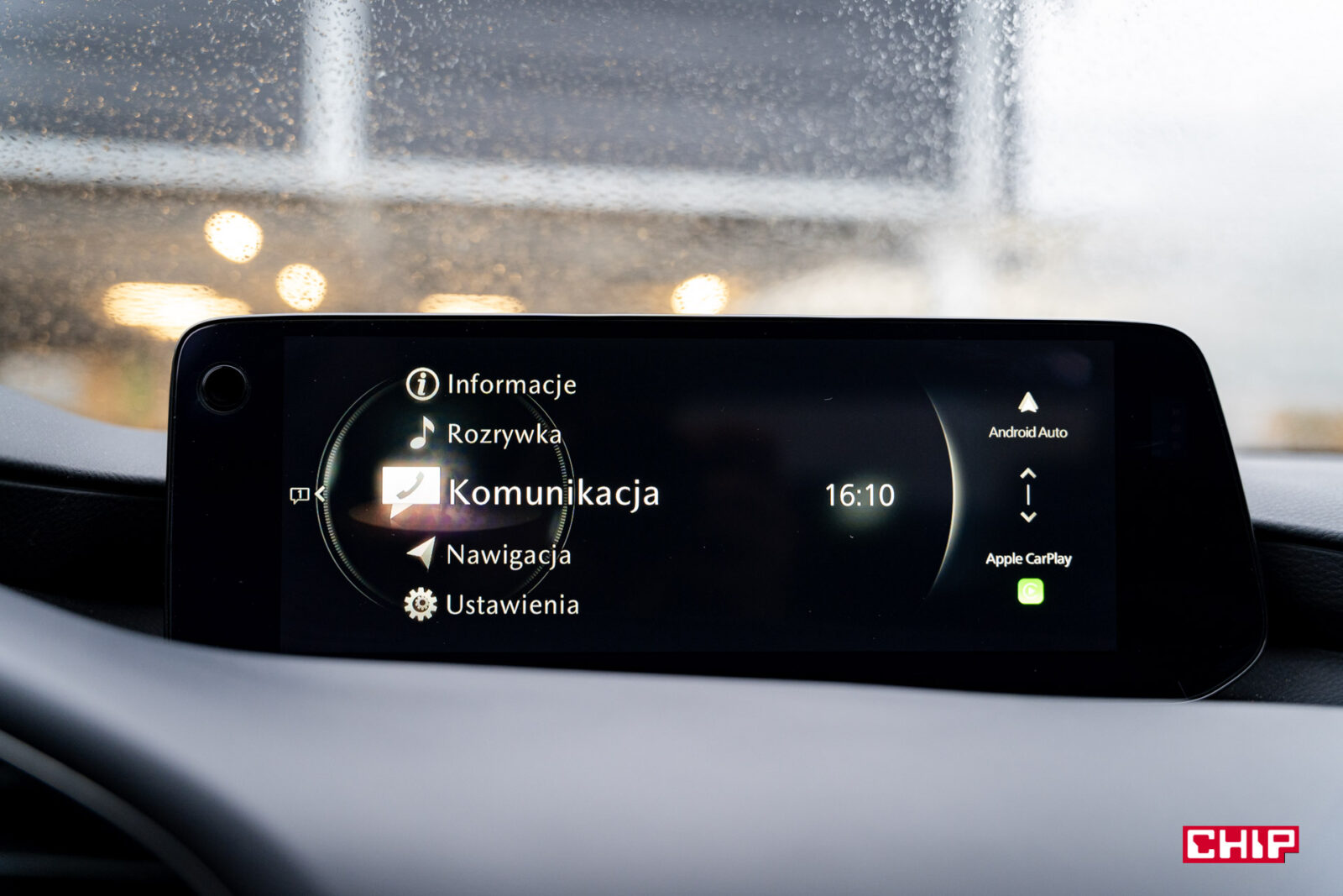 Obecna, czwarta generacja Mazdy 3 to auto z 2018 roku i w technologii to szmat czasu. A mimo to trudno nazwać dostępne tu multimedia przestarzałymi. Do dyspozycji mamy ponad 10-calowy ekran główny oraz 8-calowy ekran kierowcy.