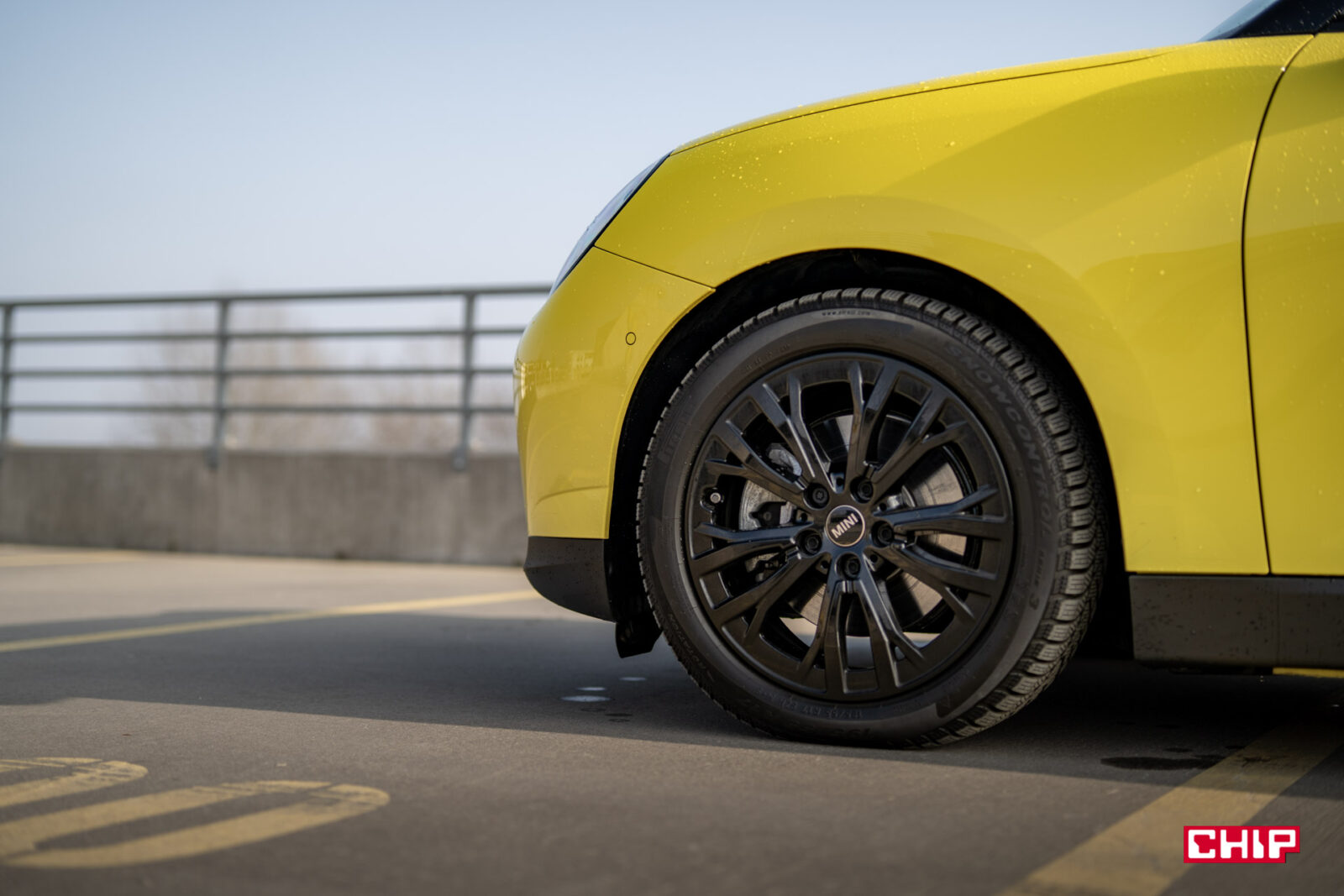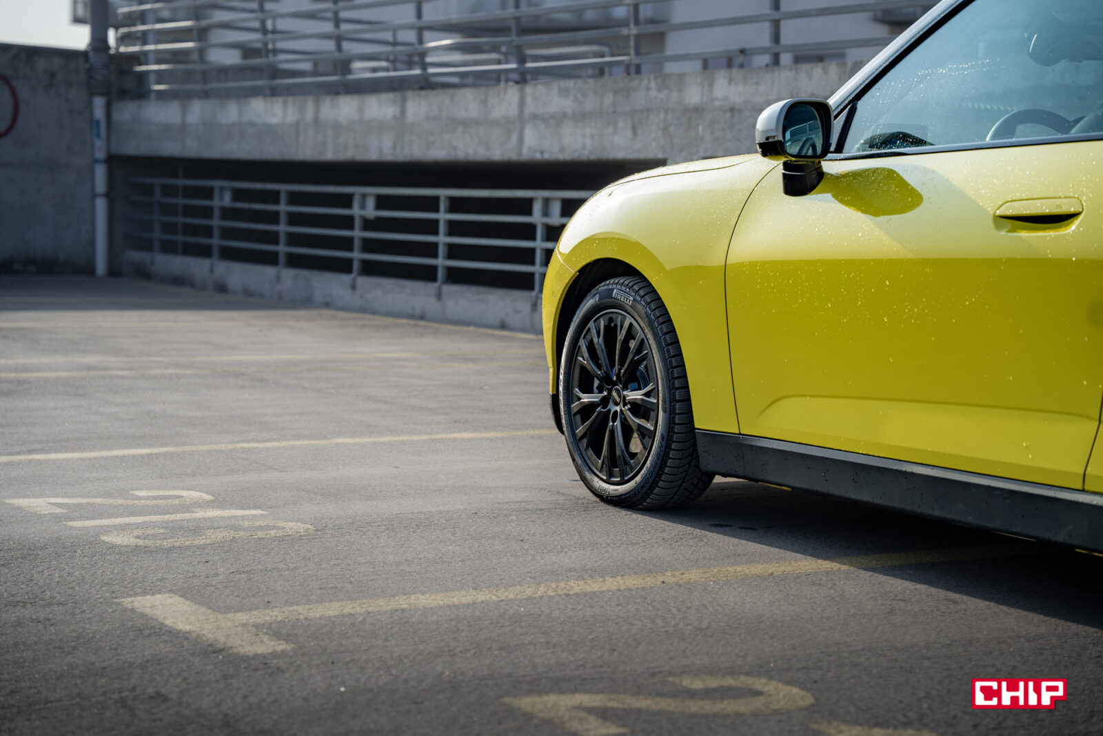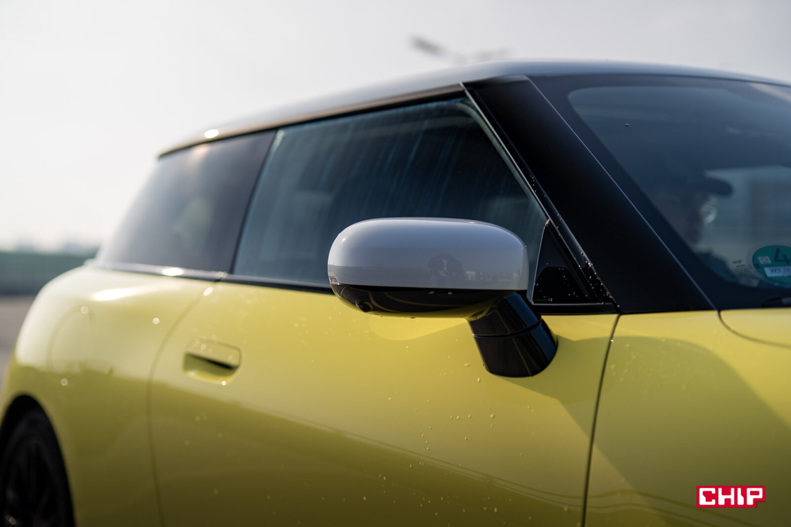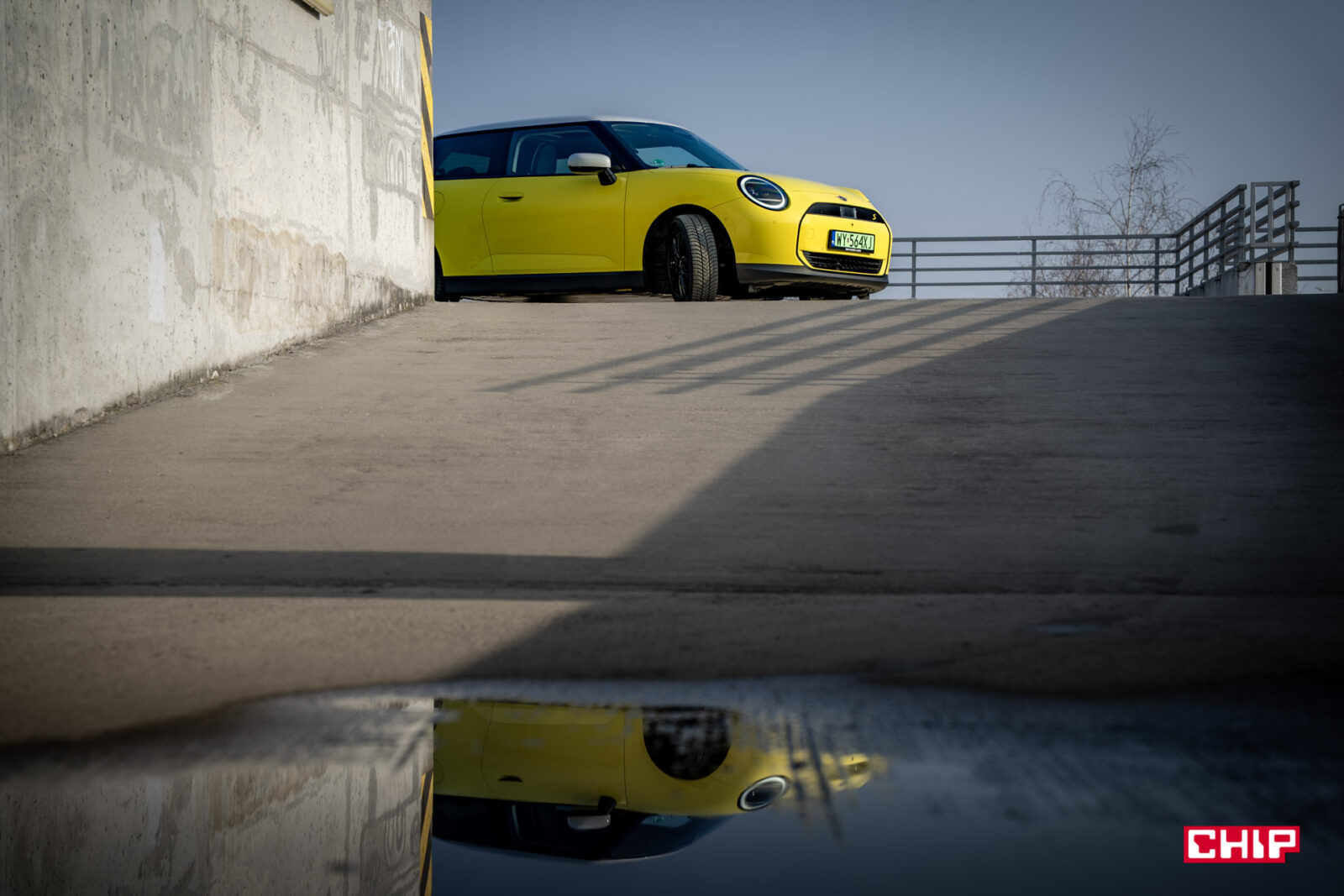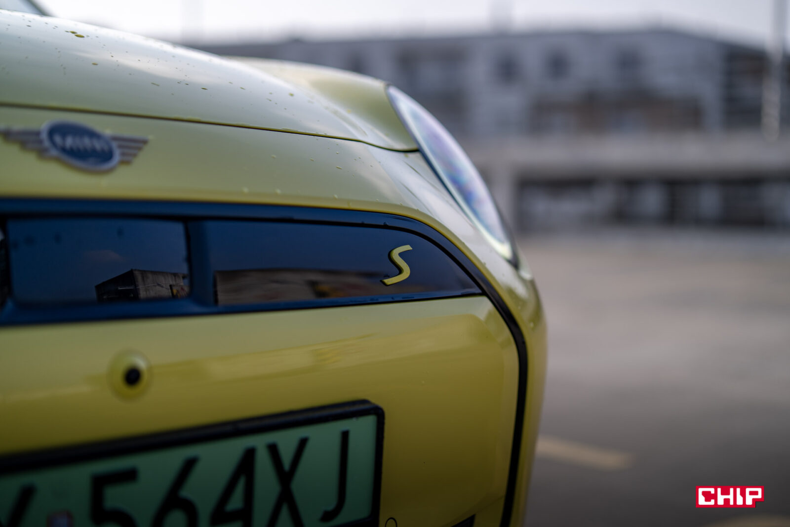 MINI Cooper SE wygląda z zewnątrz dokładnie tak samo, jak jego spalinowy odpowiednik i właściwie jedynym elementem, który zdradzi nam elektryczny napęd (poza kulturą jazdy) są wspomniane już zielone tablice rejestracyjne. Egzemplarz testowy dostałem jeszcze w żółciutkim, kanarkowym odcieniu, co dodaje temu samochodowi uroku, chociaż nasze połączenie stylistyczne mogło być dość specyficzne — ale finalnie całkiem się polubiliśmy.