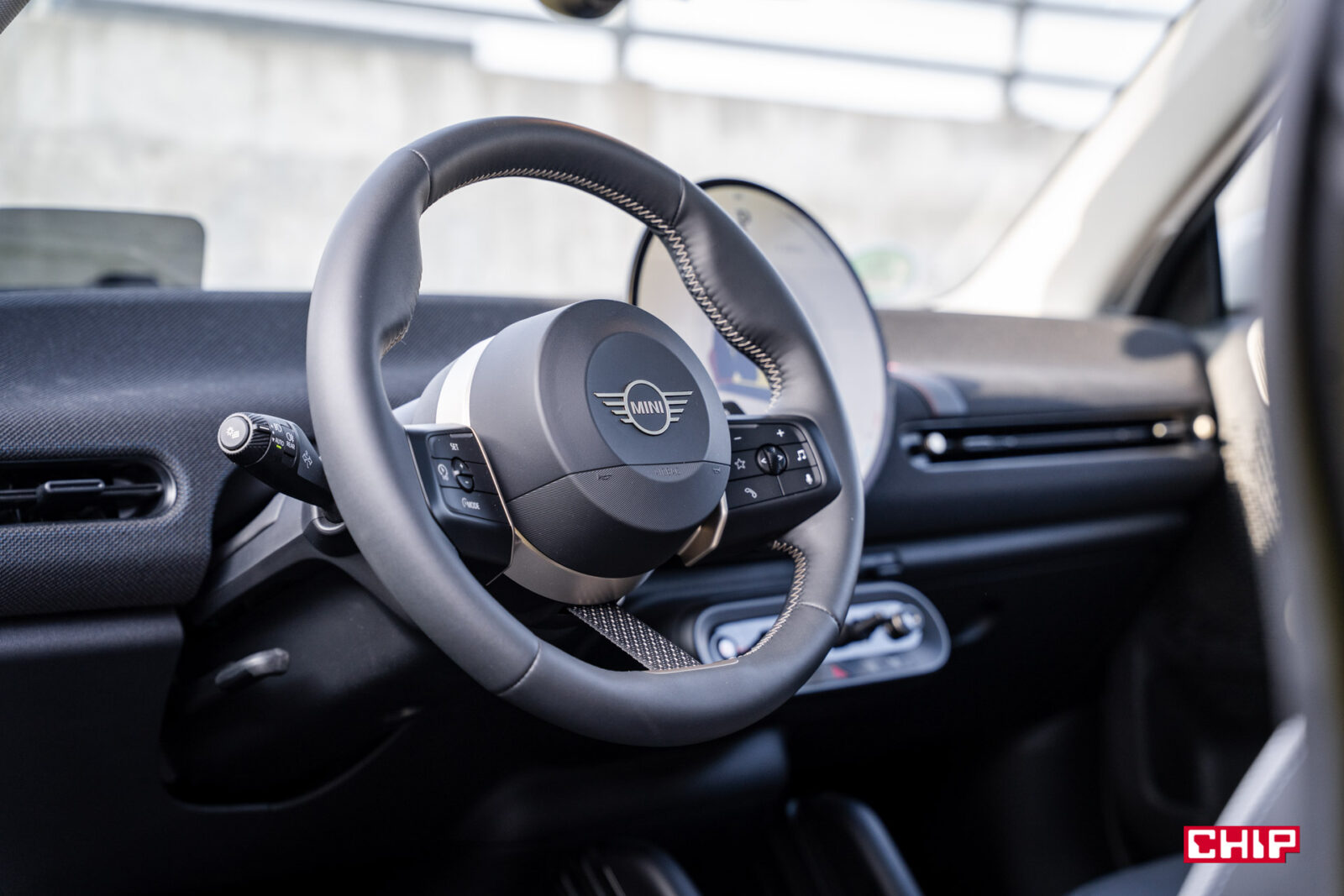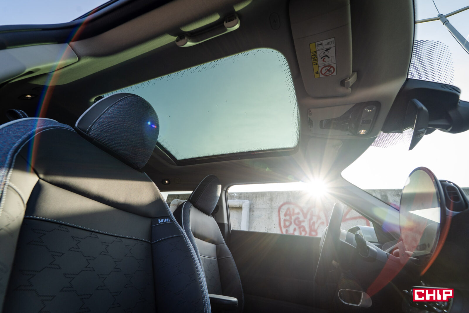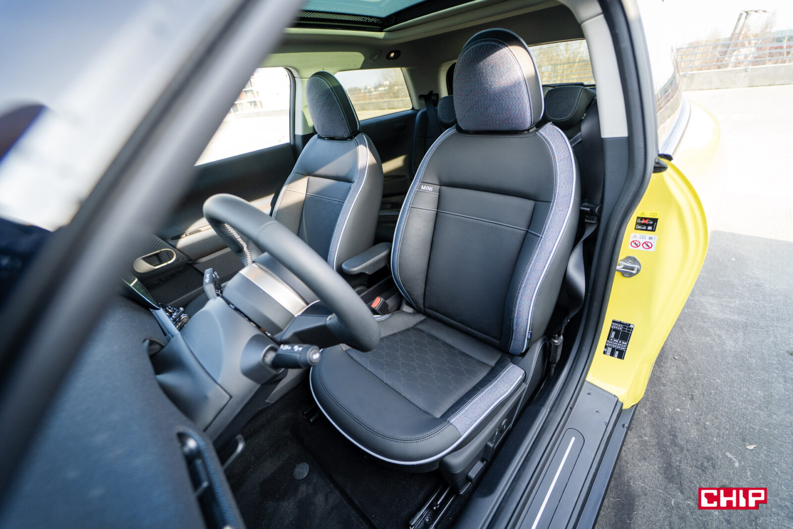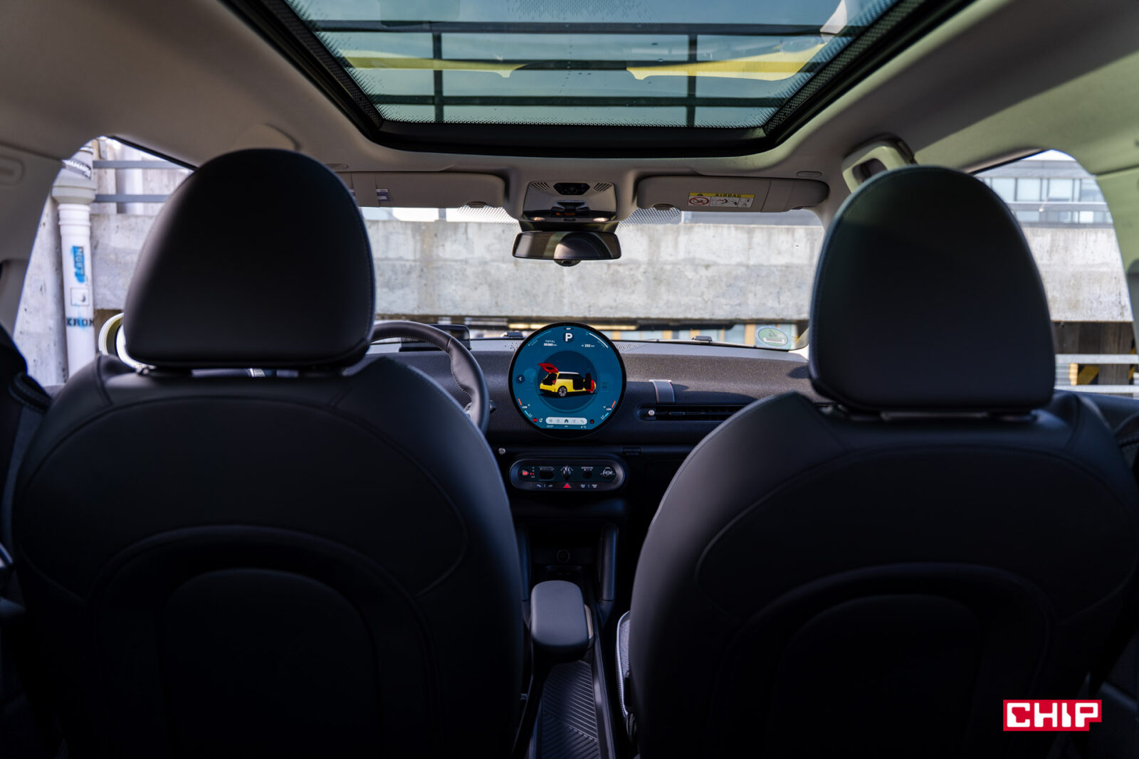 MINI Cooper łączy w sobie klasyczne DNA marki z nutą futurystycznej świeżości — to design, który nie wszystkim od razu sprzeda ten samochód, ale bez dwóch zdań przykuje uwagę i zrobi spore wrażenie. Przyciemniane tylne szyby i szklany dach panoramiczny, gdzie znajduje się dodatkowe podświetlenie, dodają luksusowego i jednocześnie ekscentrycznego akcentu. Sam z nowymi MINI mam taki dylemat, że chociaż raczej nie kupuje mnie ta stylistyka na tyle, żebym sam rozważał zakup takiego samochodu, to trudno jej zwyczajnie nie docenić i za każdym razem, kiedy po dłuższej przerwie wsiadam do jakiegokolwiek modelu z nowej linii (Aceman również przypadł mi do gustu, nawet nieco bardziej przez większe gabaryty) to jestem zwyczajnie oczarowany. Gdyż właśnie, to, co dzieje się w środku, robi chyba nawet jeszcze większe wrażenie.
