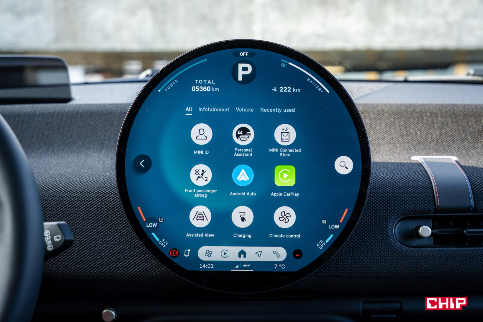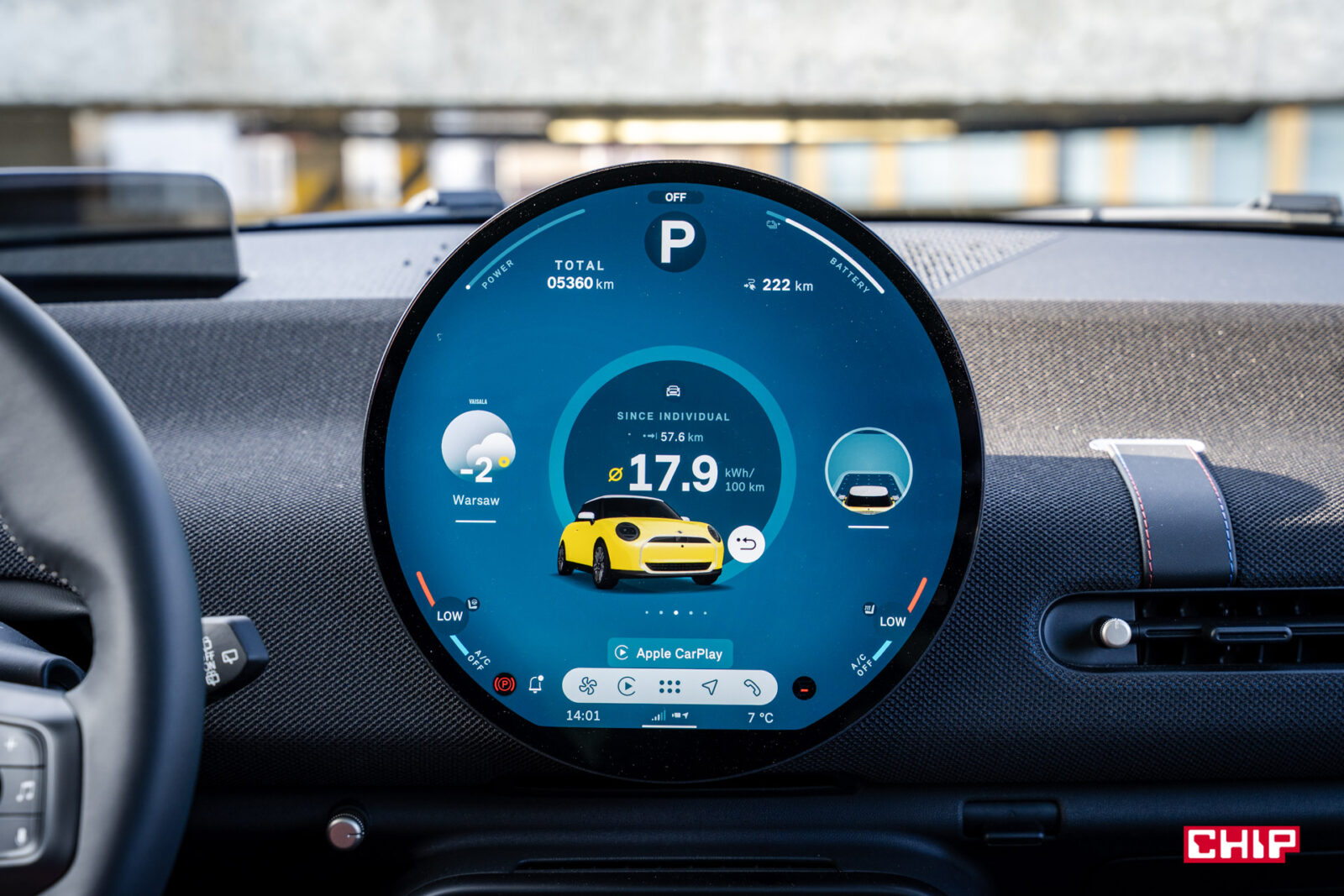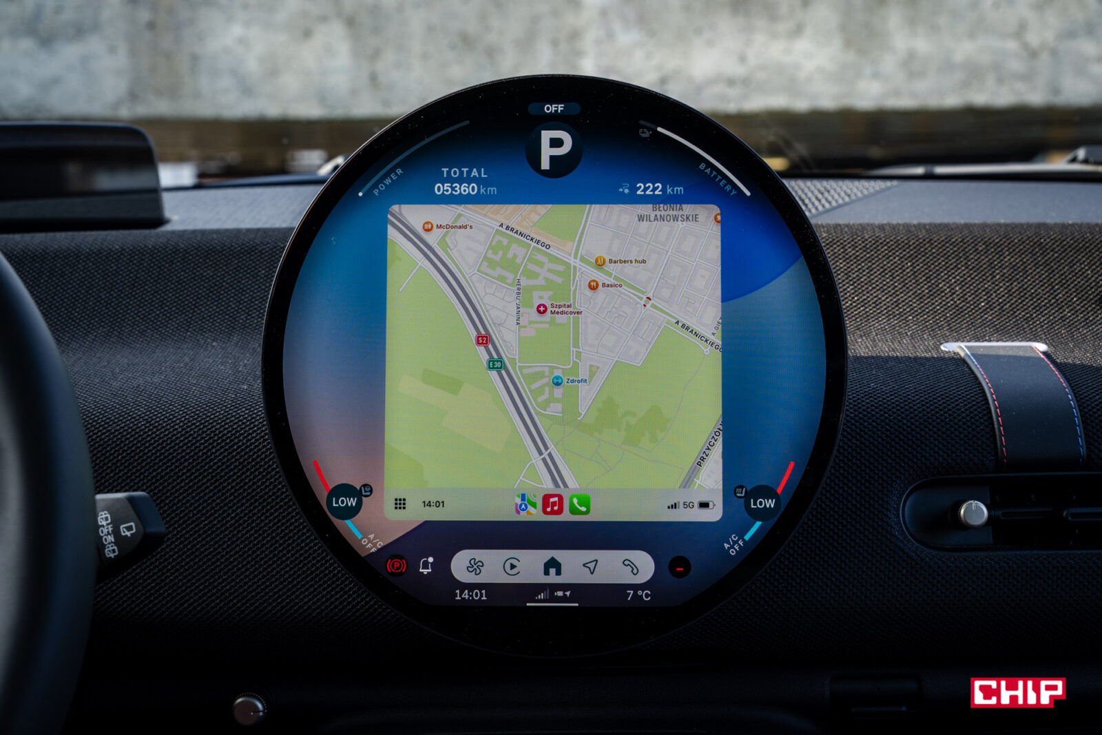 Sam system jest intuicyjny i przejrzysty, ale jak radzi sobie z aplikacjami na okrągłym ekranie OLED? Tu nie jest idealnie. Apple CarPlay, Android Auto czy AirConsole wyświetlają się w prostokątnym oknie na środku — mniejszym i mniej zgranym z designem ekranu. Jest to zrozumiałe, bo wymagałoby to przeprojektowania całego UI tylko dla jednej marki samochodów, jednak estetycznie trochę razi — ale funkcjonalnie działa bez zarzutu, a to jest najważniejsze. Technologicznie Cooper to prawdziwa perełka — łączy praktyczność z nutą szaleństwa, ale jest płynnie, jest nowocześnie, jest naprawdę świetnie.