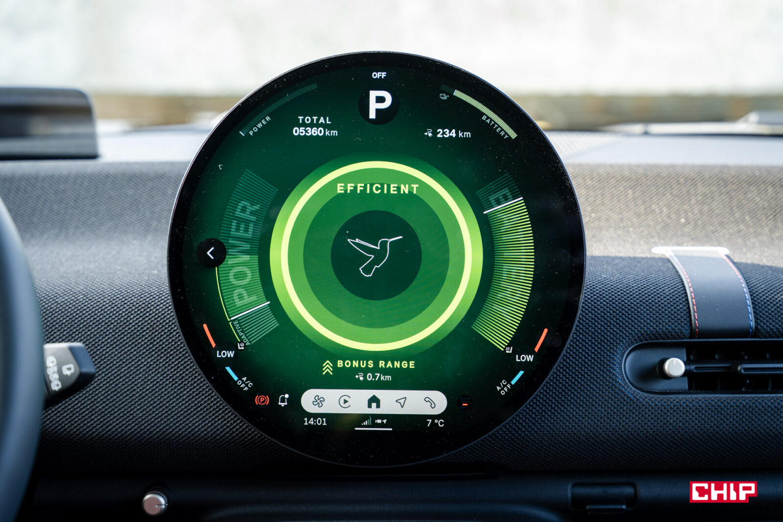 W elektrycznym Cooperze, o czym już trochę wspomniałem, jest jeszcze jeden smaczek — dźwięk. Podobnie jak w BMW, podczas przyspieszania słychać futurystyczny, lekko „kosmiczny” ton. Nie jest to dzieło Hansa Zimmera, ale MINI nadało mu swój własny, bardziej zwariowany charakter; taki, który pasuje do ich stylu. To drobiazg, ale świetnie buduje klimat i przypomina, że siedzimy w czymś więcej niż zwykłym aucie — no i fakt, że dźwięk zmienia się zależnie od trybu jazdy, totalnie mnie kupił.