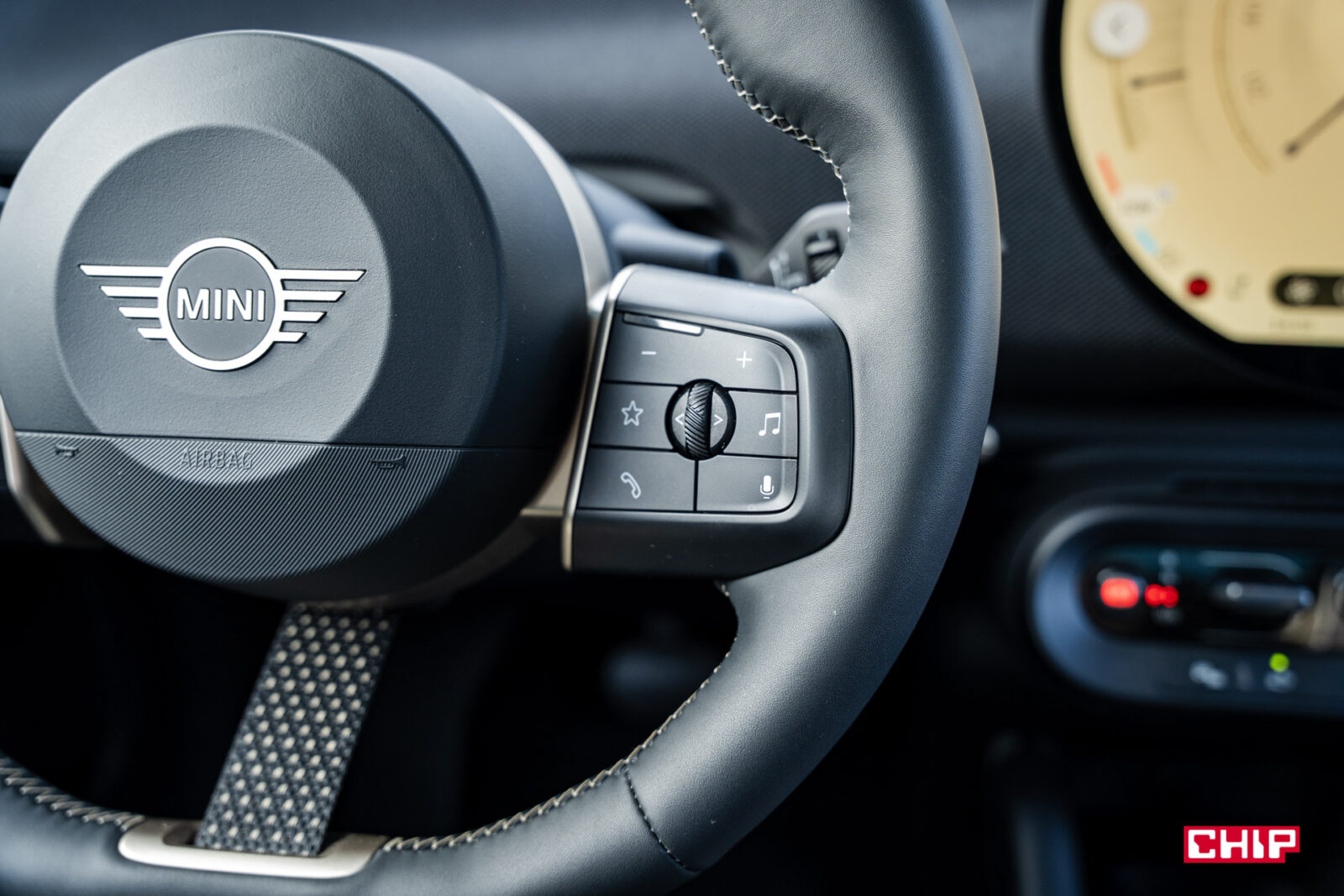 Jeśli chodzi jednak o technologiczne smaczki, to dodatkowym atutem jest tryb AR w nawigacji, który na skomplikowanych rondach czy skrzyżowaniach pokazuje na ekranie i head-upie precyzyjne wskazówki, więc trudno tutaj pomylić zakręt. MINI poszło też w „teslowe” klimaty z rozrywką. Mamy tu AirConsole Games — gry, w które gramy na centralnym ekranie, używając smartfonów jako kontrolerów. Na liście? UNO, GoKartGo! Air!, szachy, quizy, a nawet Overcooked — to ostatnie jest najbardziej zaskakujące, bo to naprawdę dobra gra, która głośno debiutowała na PC i konsolach. Jest też ukryty bajer: tryb scratchowania. Działa tylko ze Spotify wbudowanym w MINI 9 (nie przez CarPlay) — przeciągamy trzema palcami po ekranie, a ten zamienia się w wielką płytę winylową do „dj-skich” popisów. Nie jest to może poziom profesjonalnego sprzętu, ale jako ciekawostka sprawdza się świetnie.