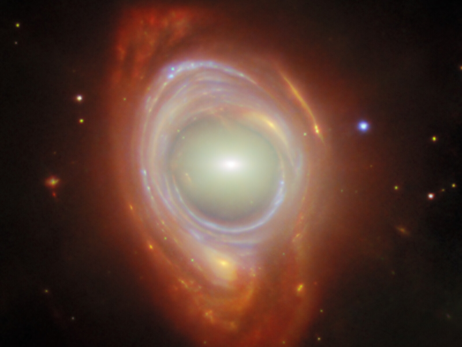 Co widzimy na udostępnionym obrazie? Na pierwszym planie znajduje się galaktyka eliptyczna będącą częścią gromady galaktyk znanej jako SMACSJ0028.2-7537. Za sprawą swojej potężnej masy może ona zaginać światło galaktyki spiralnej znajdującej się daleko w tyle (względem obserwatora). I to właśnie ta odległa struktura padła łupem astronomów, którzy poza nowinkami technologicznymi dysponują też sprytem i magią świata fizyki.