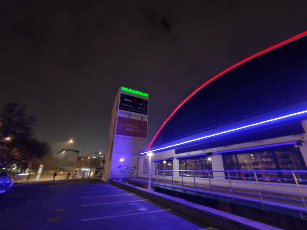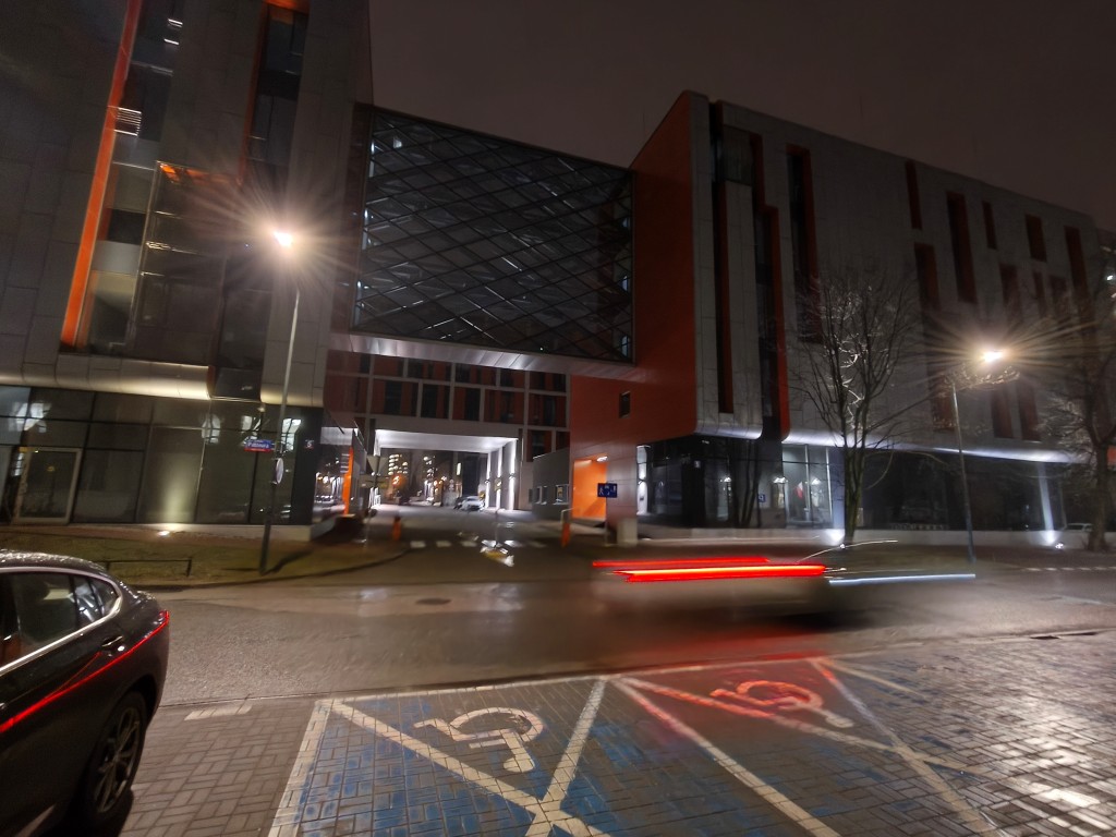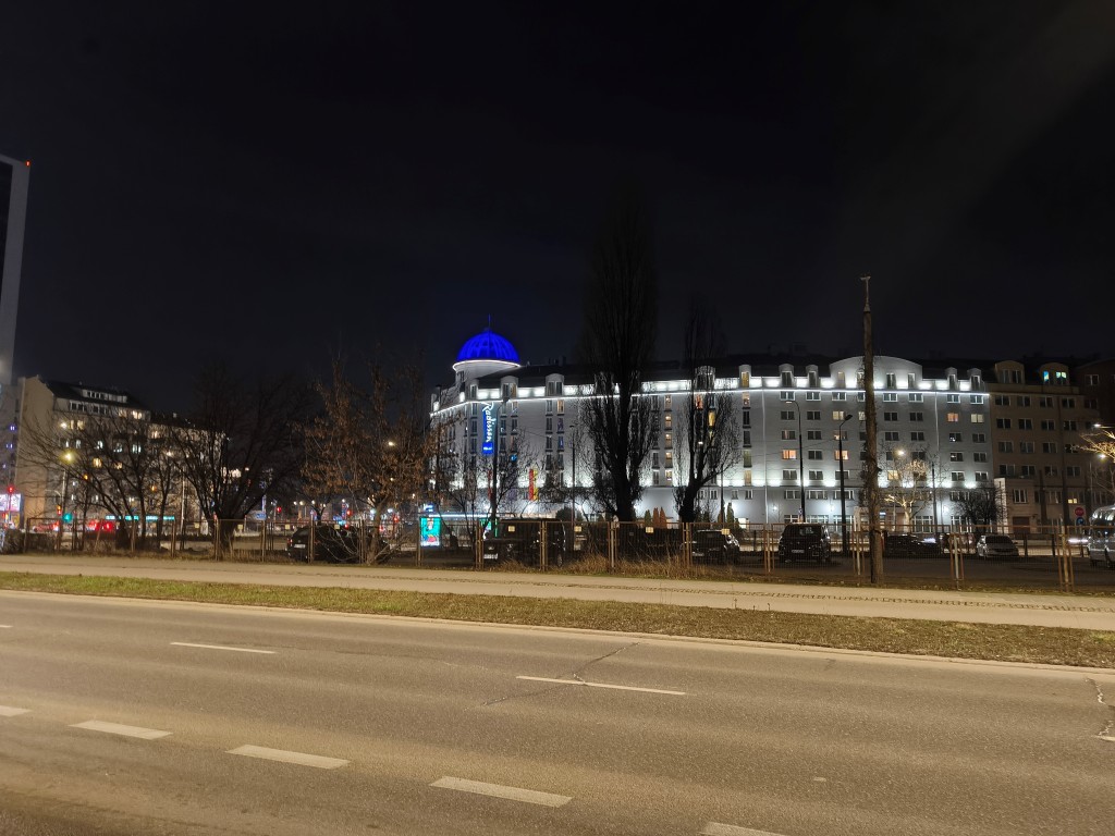 Sztuczki w oprogramowaniu nie zawsze uratują nocą. Tu pogłębia się przepaść między głównym aparatem a resztą stawki. O ile w przypadku głównego aparatu najczęściej byłem zadowolony, tak reszta spisuje się gorzej. Przybliżający jeszcze potrafi dać radę, jeśli w kadrze będą odpowiednio mocne źródła światła, ale ultraszeroki kąt nawet w trybie nocnym nie zrobi dobrego zdjęcia. To, co łączy zdjęcia, to dość wierne odwzorowanie kolorystyki poza czerwieniami, które są wielokrotnie intensywniejsze. Nie zawsze aparaty radzą sobie też z rozbłyskami i światło wpadające prosto w soczewkę zepsuje nieraz dobrze wyglądające ujęcie.