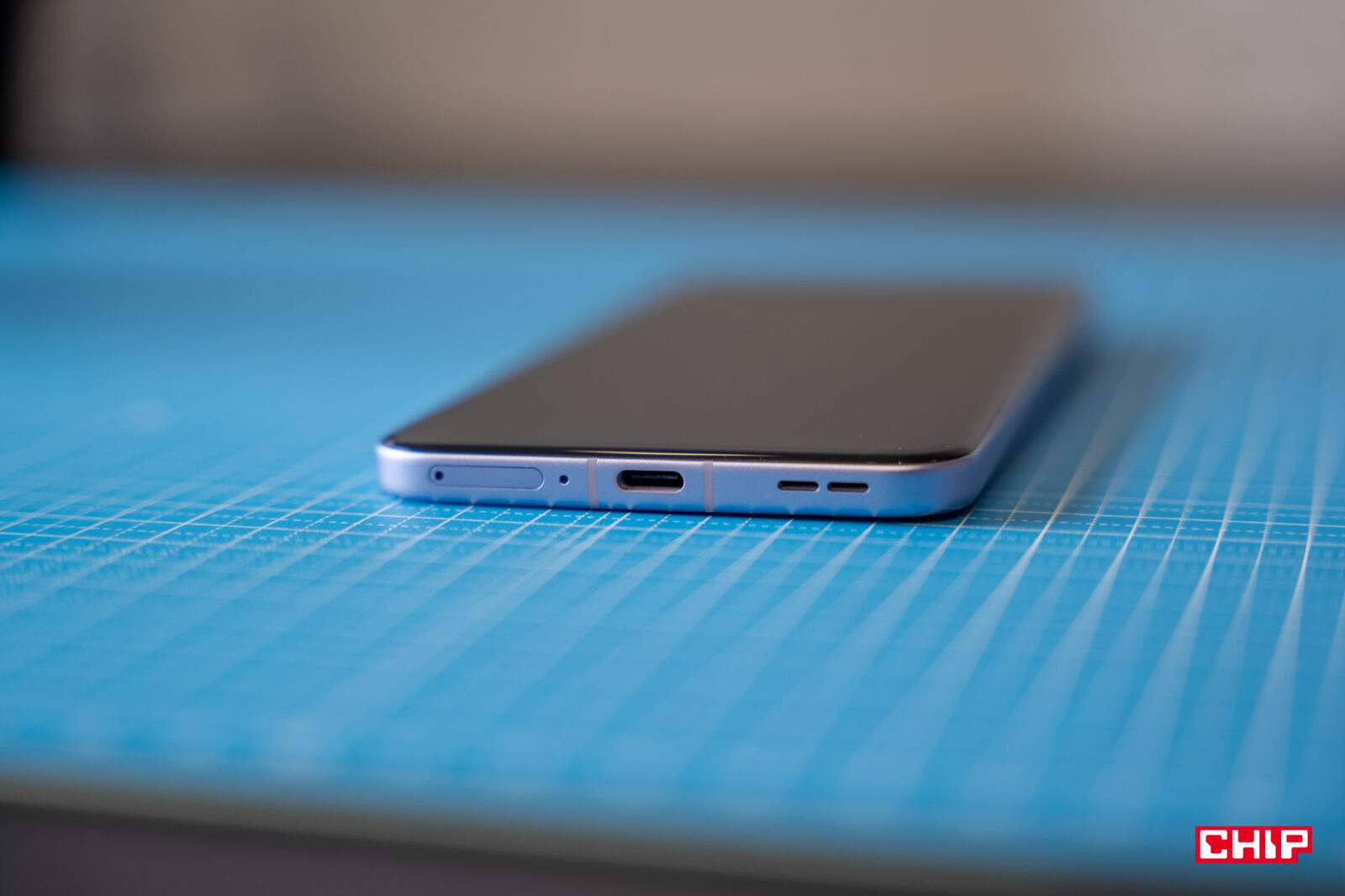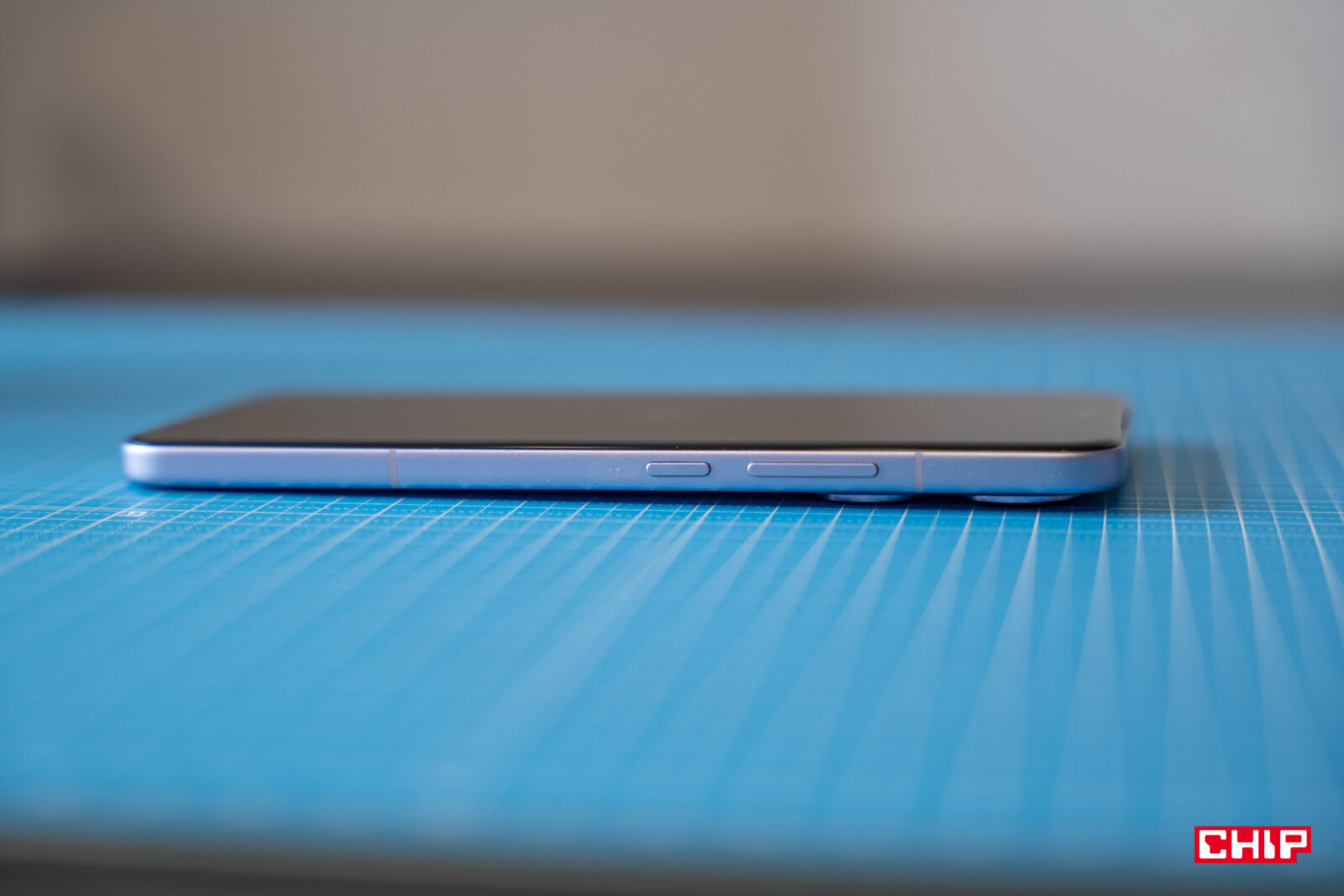 Płaskie wykończenie pleców nie przeszkadza, bowiem przy grubości 7,6 milimetra urządzenie nie wbija się w dłonie. Delikatnie zaoblone na krawędziach ramy z aluminium dają przyjemne uczucie chłodu podczas dotyku, a w dodatku ich lakier nie zgromadził żadnych rys oraz odcisków. Przyciski znajdziemy po prawej stronie i te także sprawiają wrażenie metalowych. Ich klik oceniłbym jako standardowy – nie za płytki i nie za głęboki, z dobrym sprężynowaniem i dość cichy. U dołu znajdziemy port USB-C, slot na dwie karty Nano SIM oraz maskownicę głośnika, który jest częścią systemu stereo.