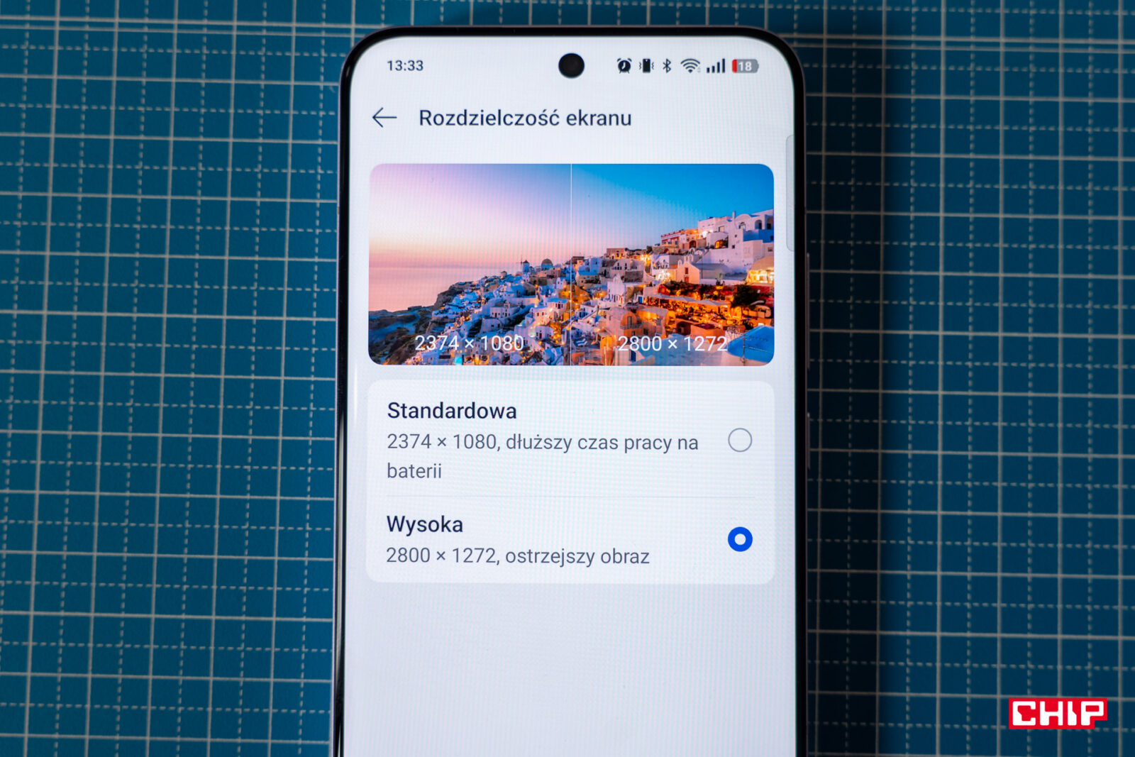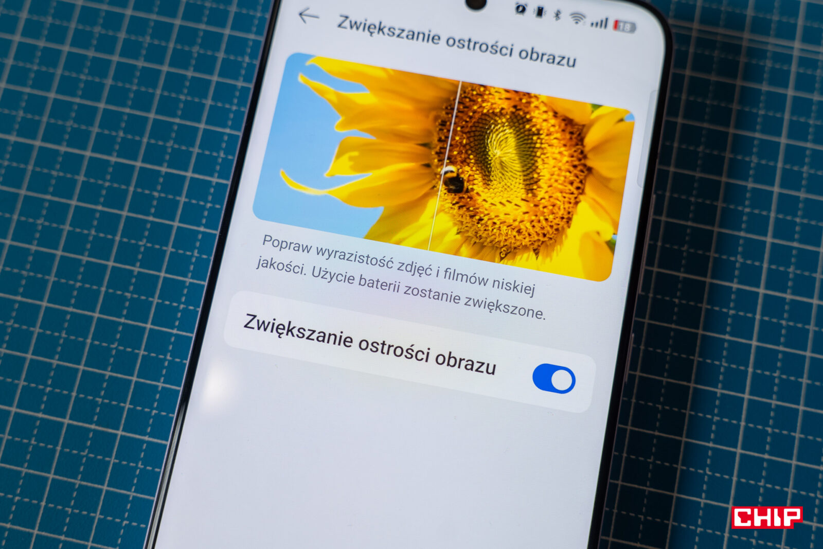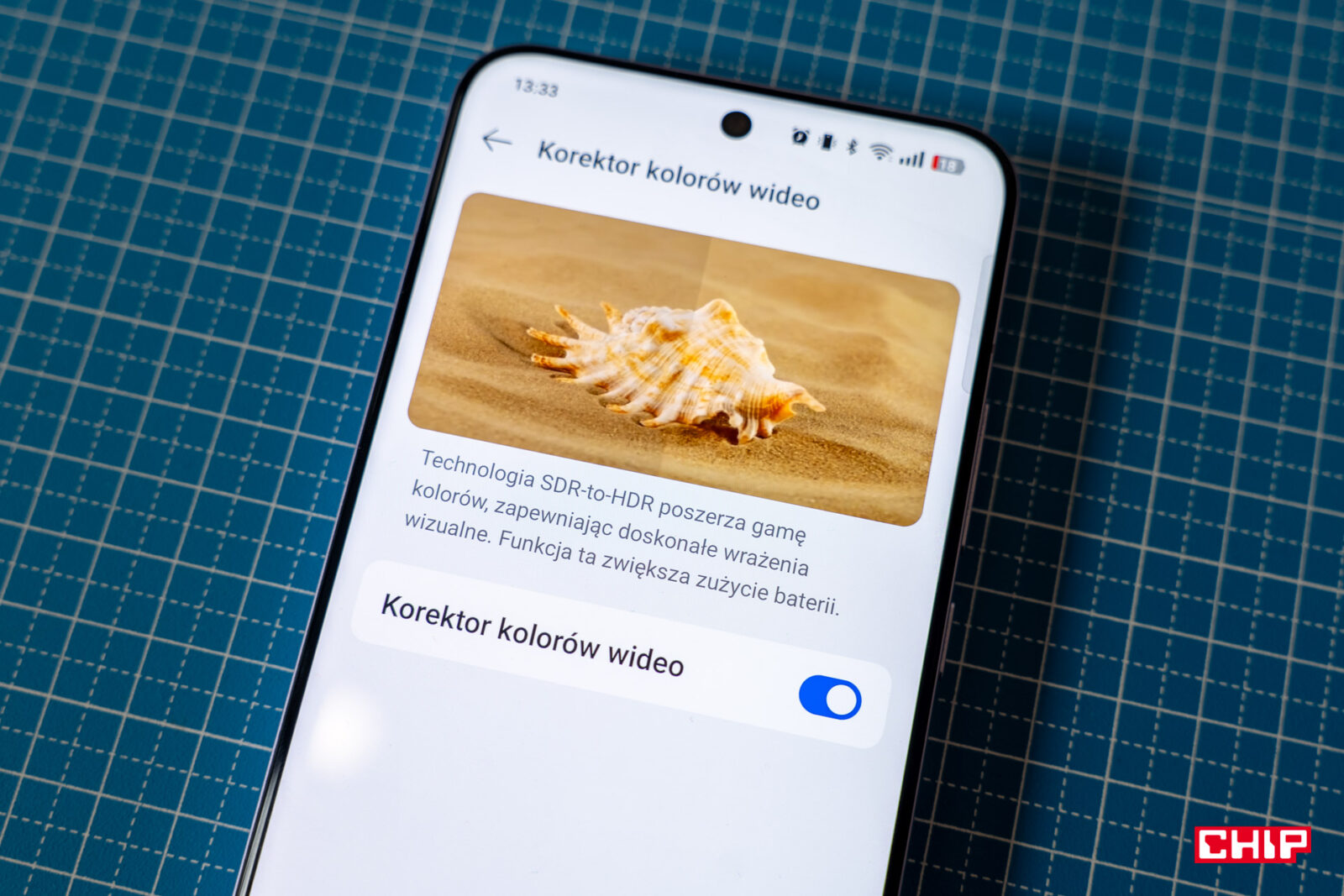 W ustawieniach Oppo Reno13 Pro 5G znajdziemy opcje zezwalające na zmianę wyświetlanej palety barw. Nie jest to najbogatszy pakiet ustawień, bo zyskujemy jedynie kontrolę nad tintą i temperaturą barwową, nie zaś poszczególną jasnością konkretnych barw, ale Oppo chce to nadrobić z pomocą ustawień dotyczących podbijania rozdzielczości materiału oraz podnoszenia kontrastu tak, by wideo SDR przypominało HDR. Narzędzia to ciekawe, ale niezbyt imponujące, podobnie jak domyślne obniżenie wyświetlanej rozdzielczości do Full HD+. Nie za duża to oszczędność baterii, a do tego trzeba to znaleźć w ustawieniach.
