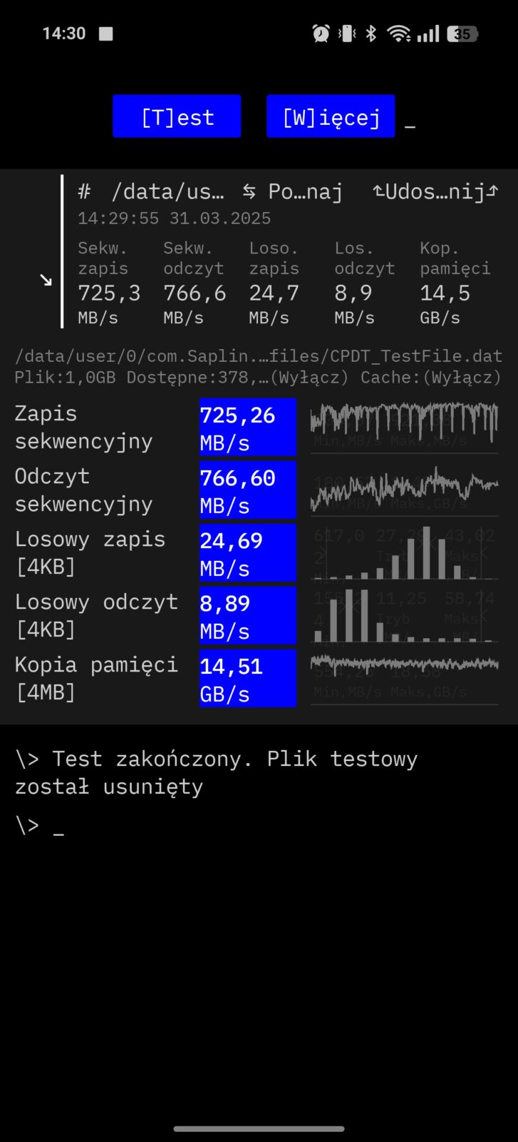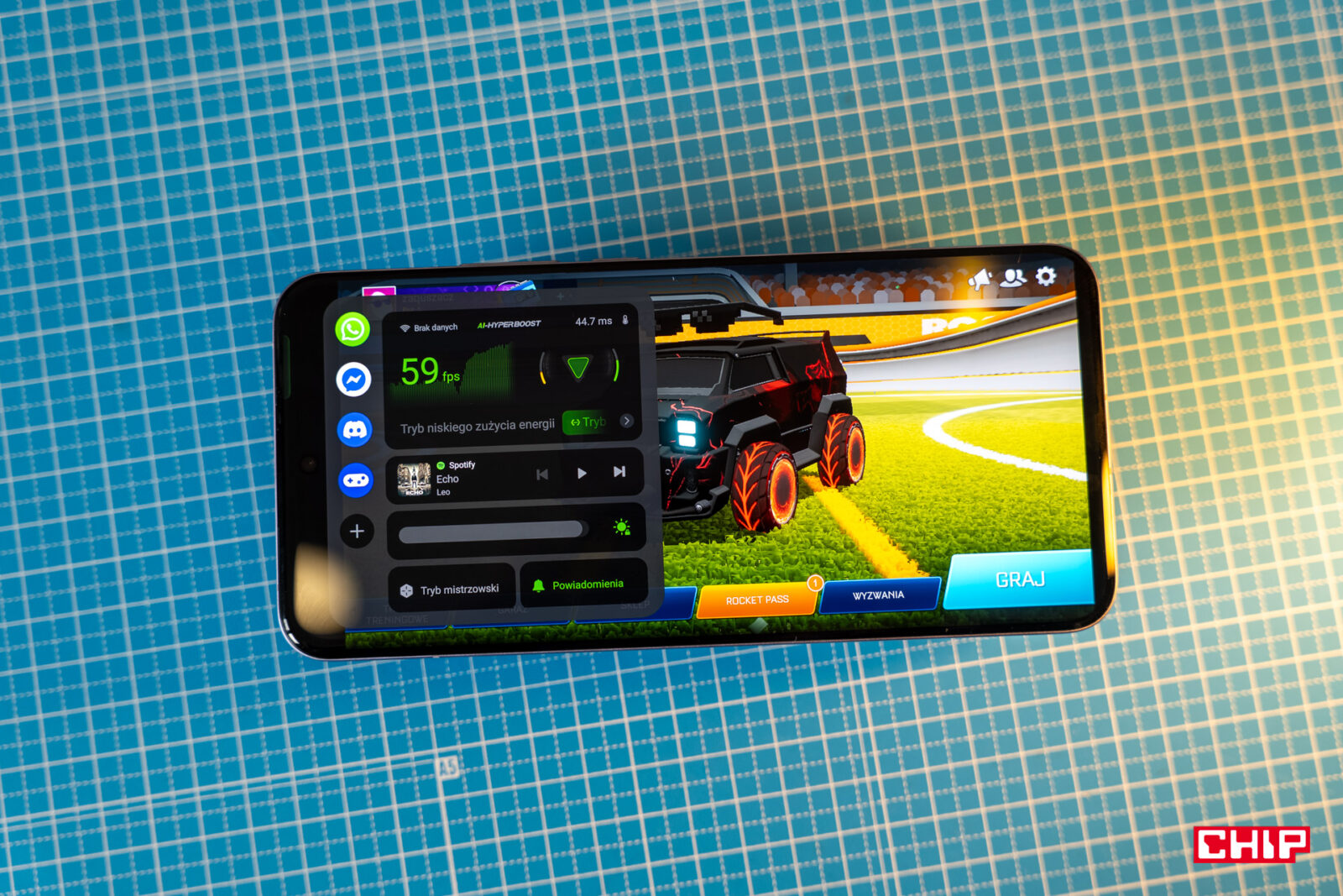 Smartfon ma tę zaletę, że pomimo swojej smukłości nie przegrzewa się nadmiernie. Ciepło bardzo dobrze rozprowadza się na lewy i prawy bok obudowy, gdzie zajmują się nim aluminiowe ramki. Nie doświadczyłem sytuacji, gdy telefon stał się zbyt gorący, choć intensywne granie na zewnątrz przy 60 FPSach oraz z włączoną łącznością 5G wystawią smartfon na próbę. Na szczęście w oprogramowaniu nie zabrakło narzędzi do optymalizacji rozgrywki z szeregiem funkcjonalności pokroju optymalizacji sieci czy ograniczania połączeń. Być może nie jest to telefon gamingowy i wydajności może zabraknąć na obsługę najwyższych detali, ale powinno starczyć jej na wysoką wydajność.
