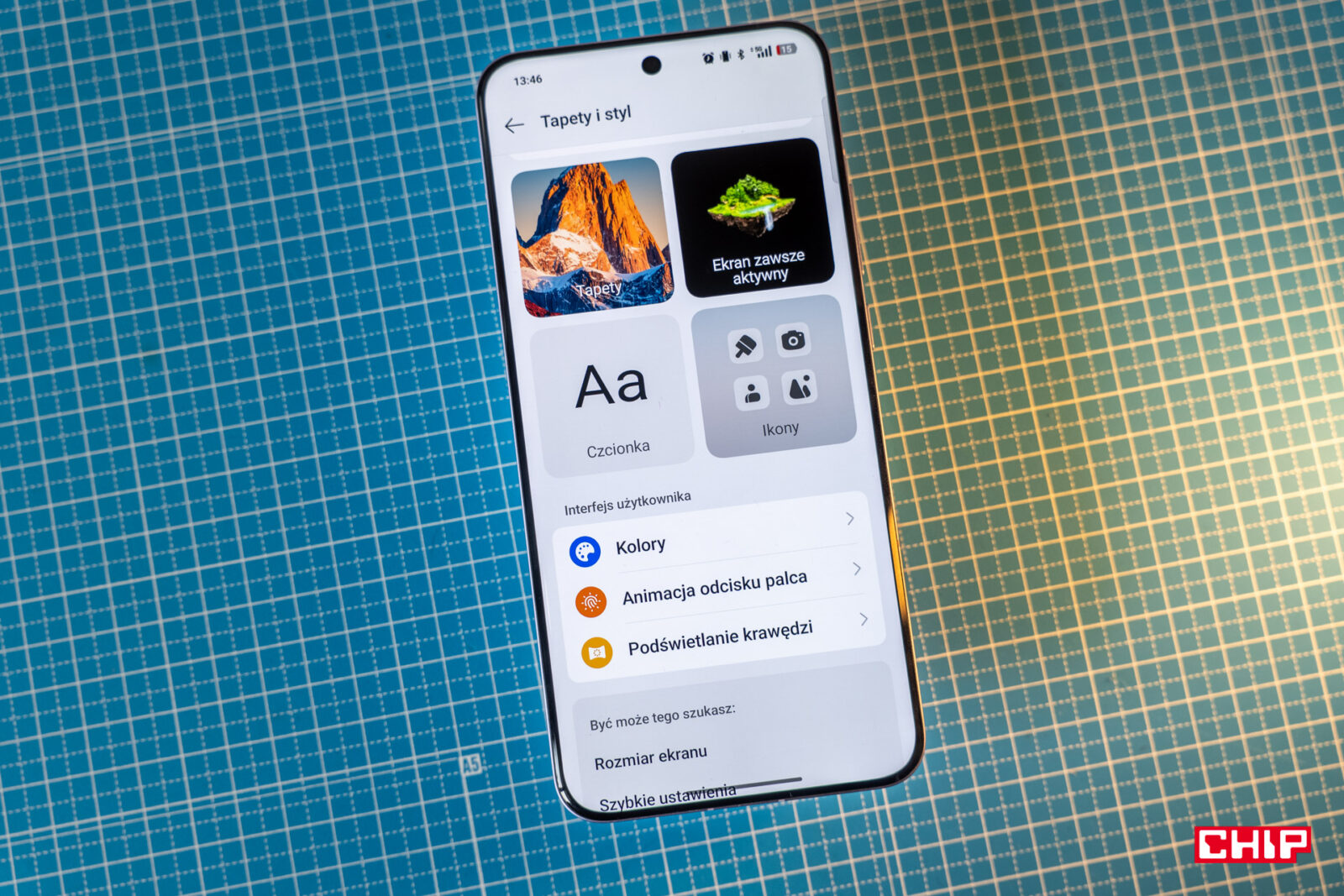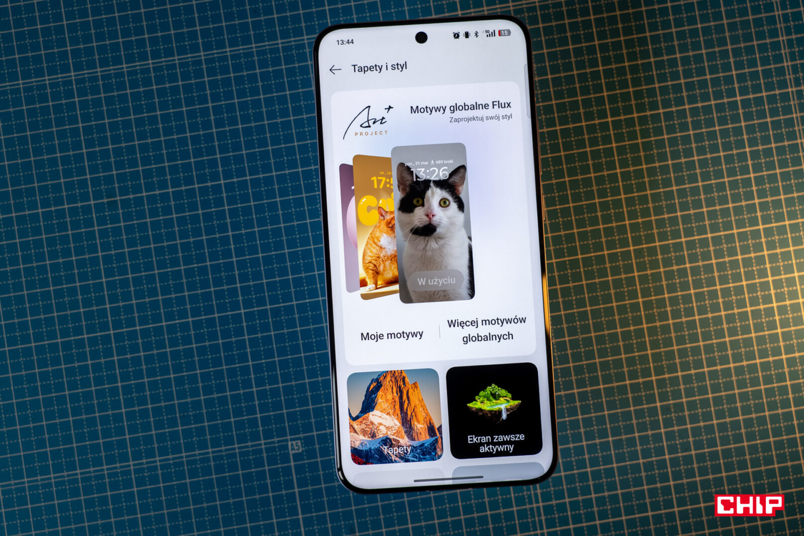 W nakładce ColorOS największą nowość wizualną stanowią jednak motywy globalne Flux. To metoda na utworzenie jednolitej kompozycji od ekranu zawsze aktywnego przez ekran blokady aż po pulpit. Rozwiązanie korzysta z kilku szablonów o pewnym stopniu elastyczności – nie możemy na przykład utworzyć własnego tekstu wchodzącego w interakcję z obiektami ze zdjęcia, ale zmienimy wiele kolorów i dodamy przydatne informacje na ekran blokady, a do tego dostylizujemy zegary. Inspiracje konkurencją w tym przypadku są słuszne i czekam na dalszy rozwój tych narzędzi.