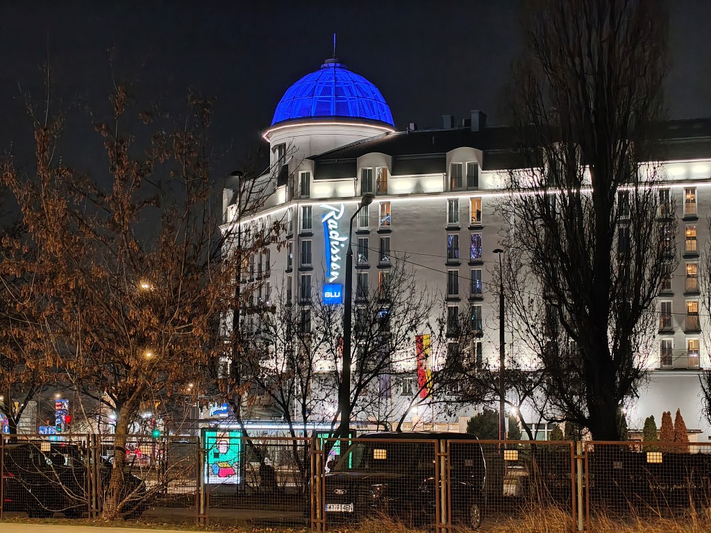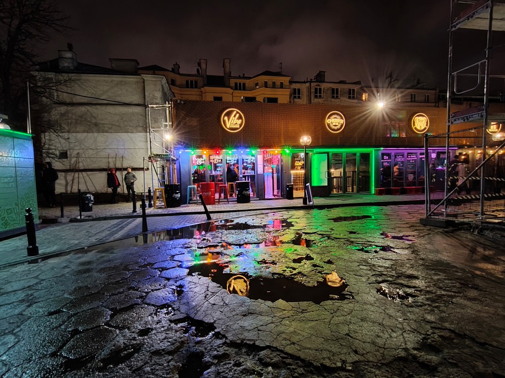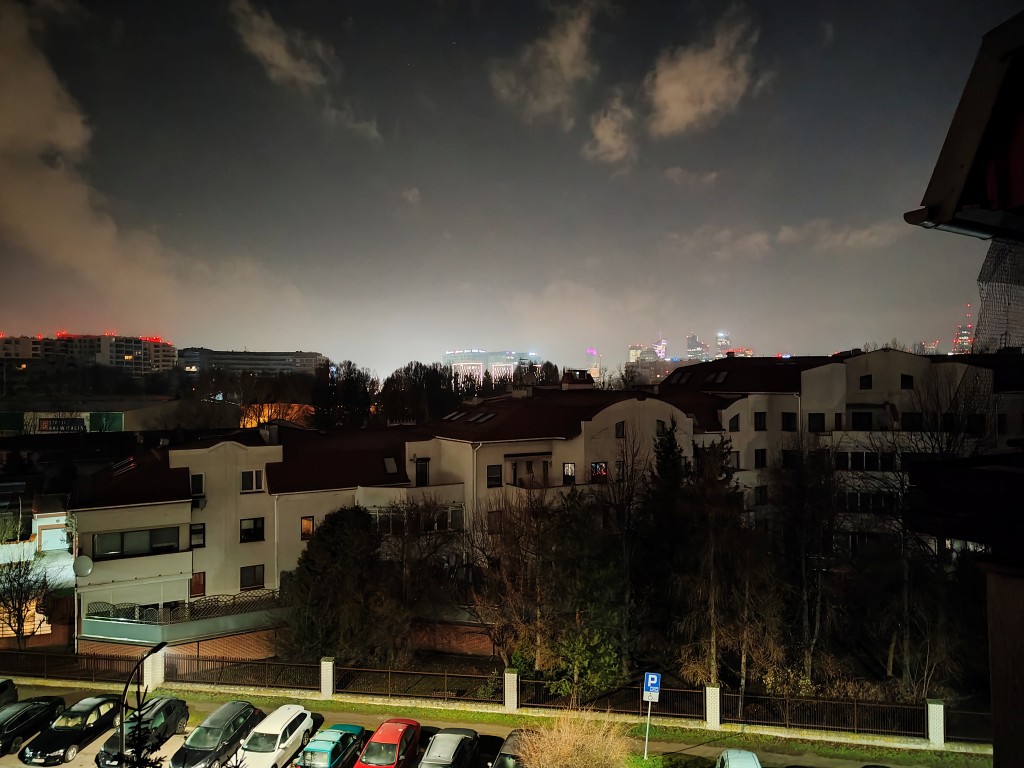 Zdjęcia nocne nie zapiszą się szczególnie w historii smartfonów. Po pierwsze należy pamiętać o tym, by nie wpuścić światła z np. latarni w taki sposób, by przysłoniło znaczą część kadru. Gdy to się uda, należy mieć stabilną rękę – niektóre fotografie rejestruje się nawet po 3 sekundy. Po trzecie – warto korzystać z włączającego się trybu nocnego. Szczególnie ma się to do obiektywu ultraszerokokątnego, bo tylko wtedy jest szansa, że coś zobaczycie w kadrze.