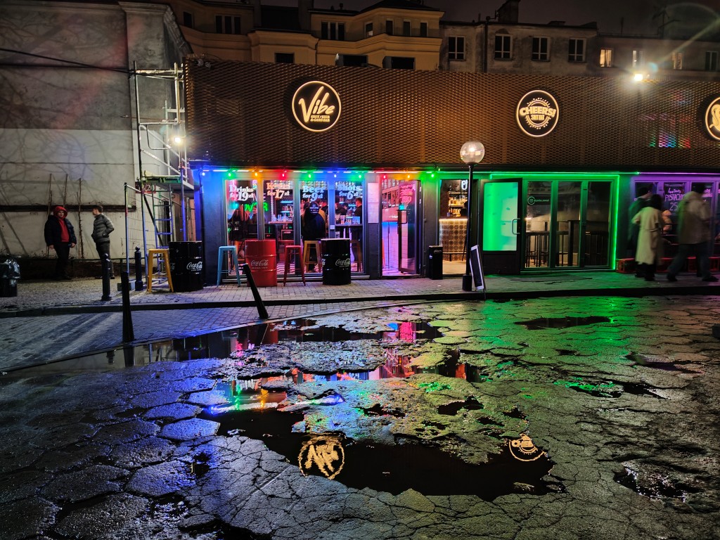 Poza tym noc nie jest mistrzowską porą dla realme 14 Pro+, bo zdjęcia nadal potrafią mieć odczuwalną dozę szumów. Szczegółowość pozostaje najlepsza w przypadku nieruchomych kadrów, ale jeśli ktoś jest w ruchu, to trudno będzie o dużą ostrość. Cieszą naturalne, nieprzekłamane kolory w porównaniu do wydarzeń rejestrowanych za dnia. Udaje się zmniejszyć rozbłyski świetlne i dodać obiektom szczegółów, ale to nic ponad średnią na rynku.