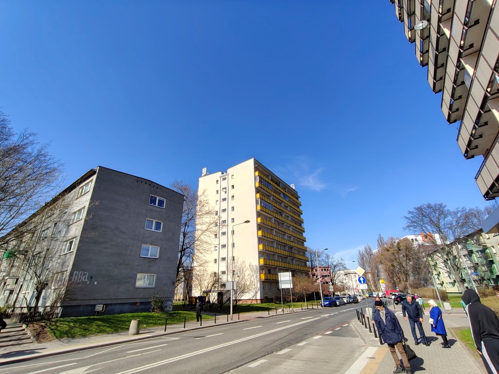 Aparat ultraszerokokątny mocno odstaje w kontraście do dwóch pozostałych oczek z tyłu. Nie chodzi tylko o rozdzielczość, ale i o poziom zaszumienia, który jest wysoki za dnia i bardzo wysoki nocą. Przez to znikają niektóre wzory z budynków, a sztuczne wyostrzanie odbiera plastyczny, miły dla oka wygląd. Do tego część obiektów dostaje poświatę. Niższa jest skuteczność HDR-u, a do tego dochodzą typowe problemy dla tego typu ogniskowych, jak efekt rybiego oka. Ogólnie zdjęcia te są ciemniejsze i mają mniej detali w cieniach, ale zachowują nasyconą kolorystykę, niemal nigdy podobną dla pozostałych aparatów. Zdecydowanie pora na coś lepszego.