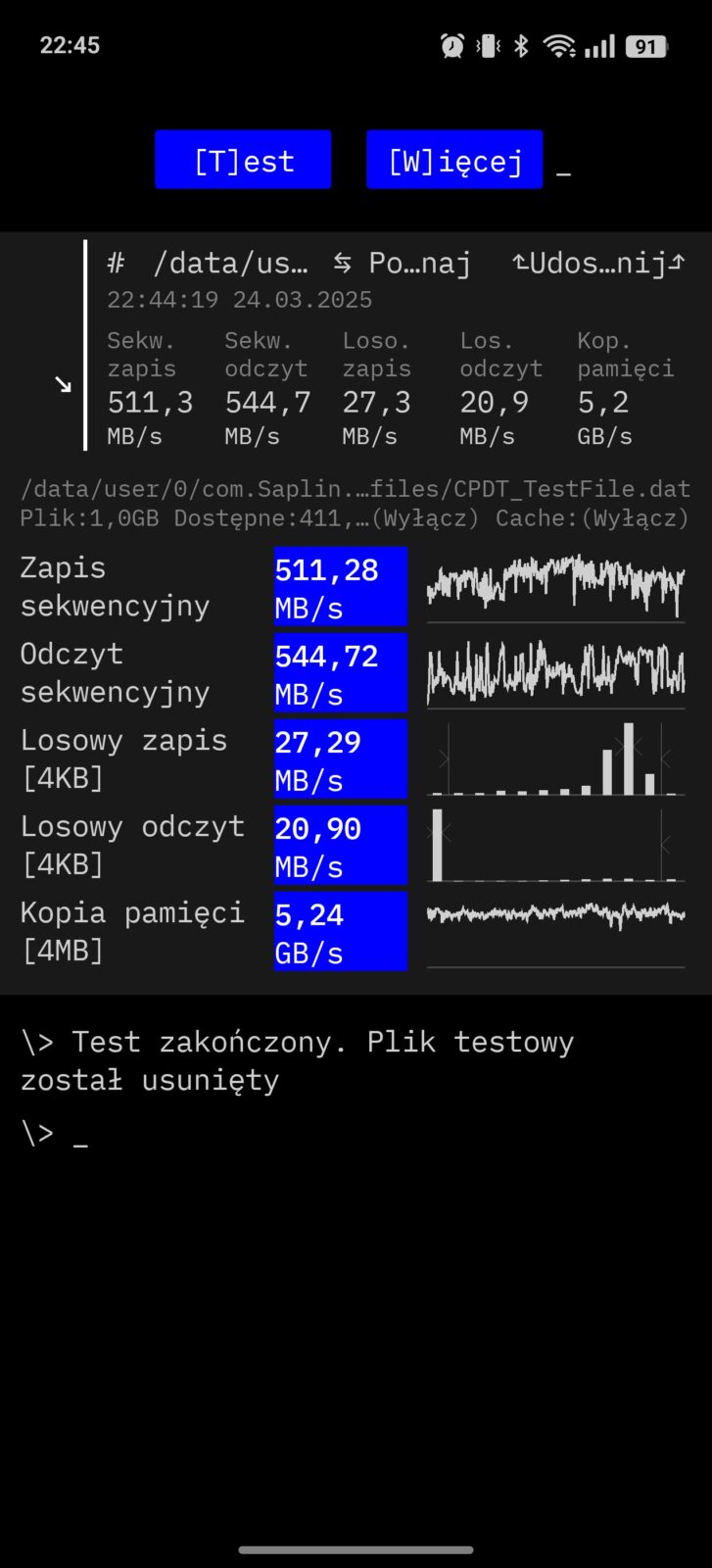 Testowany egzemplarz wyposażono w 12 GB pamięci operacyjnej oraz 512 GB pamięci na pliki.