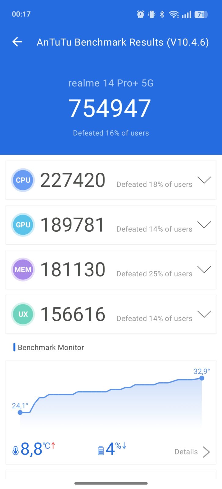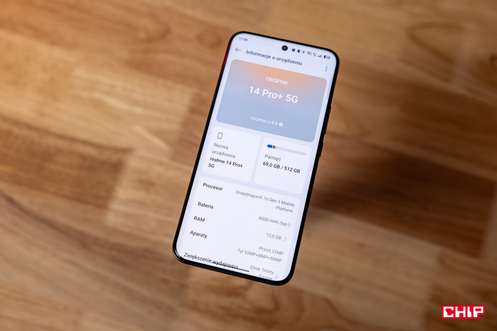 To zaskakujące, bo realme ma przecież sporo narzędzi do zarządzania urządzeniem. Dla fanów wydajności przygotowano tryb GT, który nagrzewa odczuwalnie obudowę przy dłuższych sesjach z grami. Jednocześnie realme 14 Pro+ nie przegrzewa się nadmiernie w grach i przy dłuższym obciążeniu, bo komora parowa dość dobrze rozprowadza ciepło po obudowie. Jedynie pobieranie wielu treści przez 5G (np. podczas przewijania po TikToku) czyni urządzenie nieprzyjemnym w dotyku z powodu przegrzania.