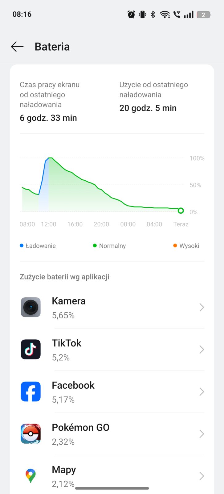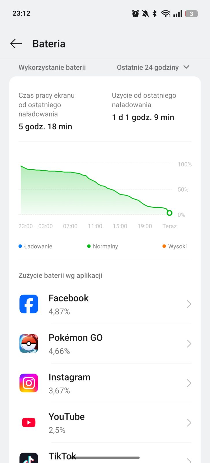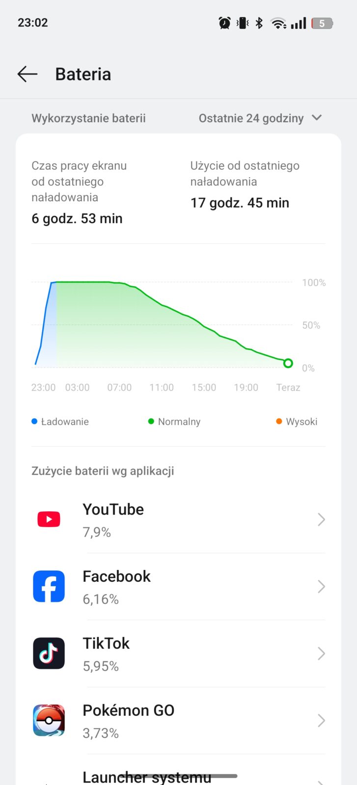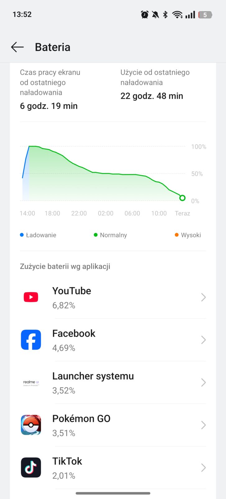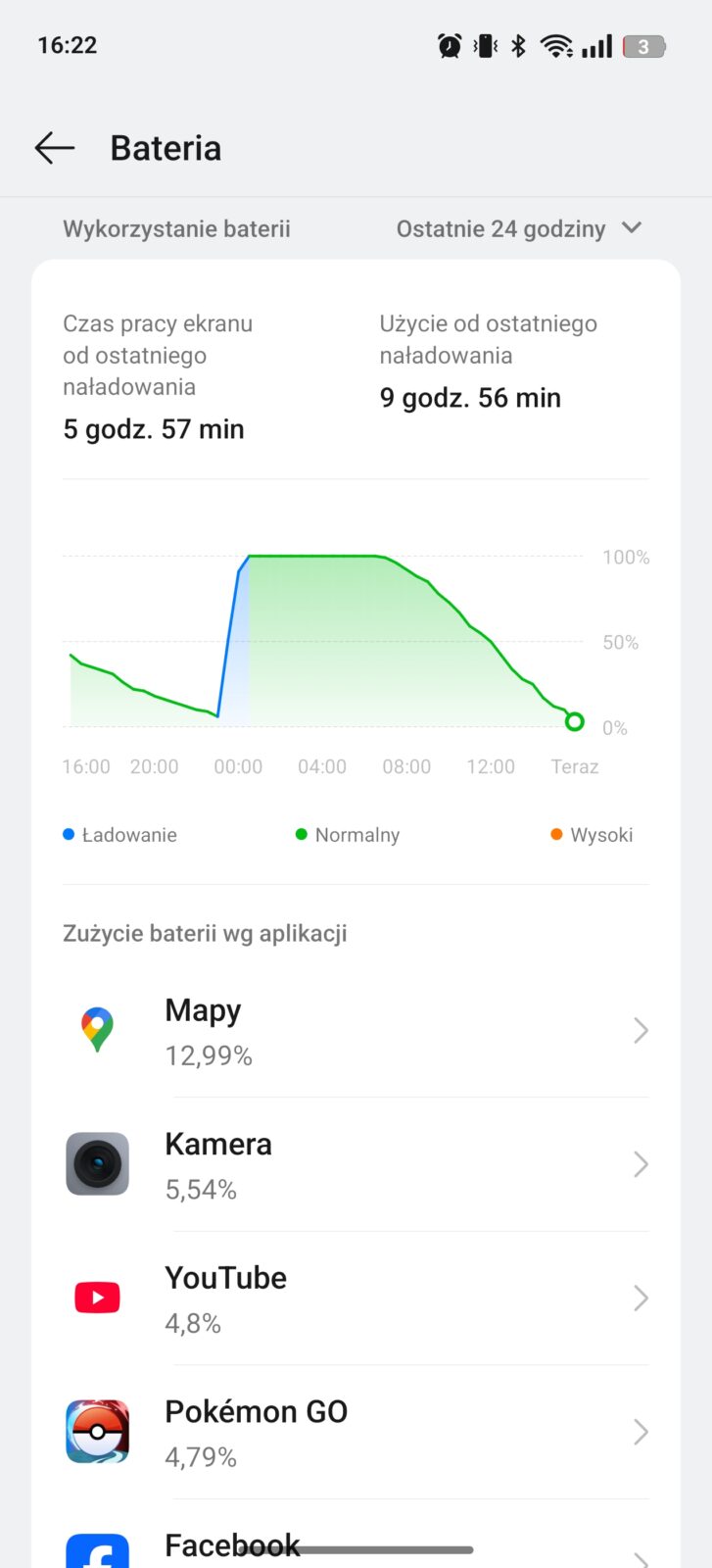Nie zrozumcie tego nagłówka źle – tu nie ma dramatu. Dla realme 14 Pro+ akumulator o pojemności 6000 mAh, większy o 1000 mAh niż przed rokiem, nie przekłada się na znacząco dłuższe czasy pracy na jednym ładowaniu, a przy wykorzystaniu sieci 5G te potrafią być nawet gorsze. To nie zawsze smartfon na komfortowy dzień z dużym obciążeniem. Na co dzień wystarczył na 5-6 godzin czasu z włączonym ekranem przy korzystaniu z Wi-Fi i okazjonalnym 5G.