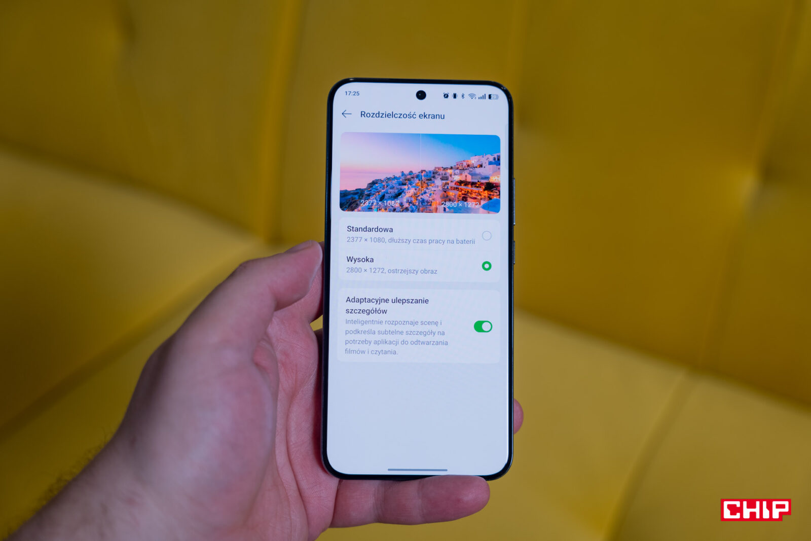 Producentom średniopółkowych telefonów chyba znudziły się ekrany o szerokości 1080 pikseli. W przypadku realme 14 Pro+ rozdzielczość wynosi 2800×1272 piksele, co ma sens zarówno ze względu na zakrzywienie panelu, jak i ze względu na ogromny rozmiar – 6,83 cala. Dość standardowo dla przedstawicieli tej klasy cenowej otrzymujemy rozwiązanie z odświeżaniem do 120 Hz, ale bez płynnego przechodzenia od 1 do 120 Hz. Smartfon odtworzy materiały w formacie HDR10 i HLG, a w aplikacjach pokroju TikToka umożliwi poprawianie kolorów (i dźwięku), zwiększanie ostrości obrazu i generowanie czegoś na wzór HDR-u. To wszystko przy jasności maksymalnej 1500 nitów w piku i 1200 nitów w trybie wysokiej jasności.