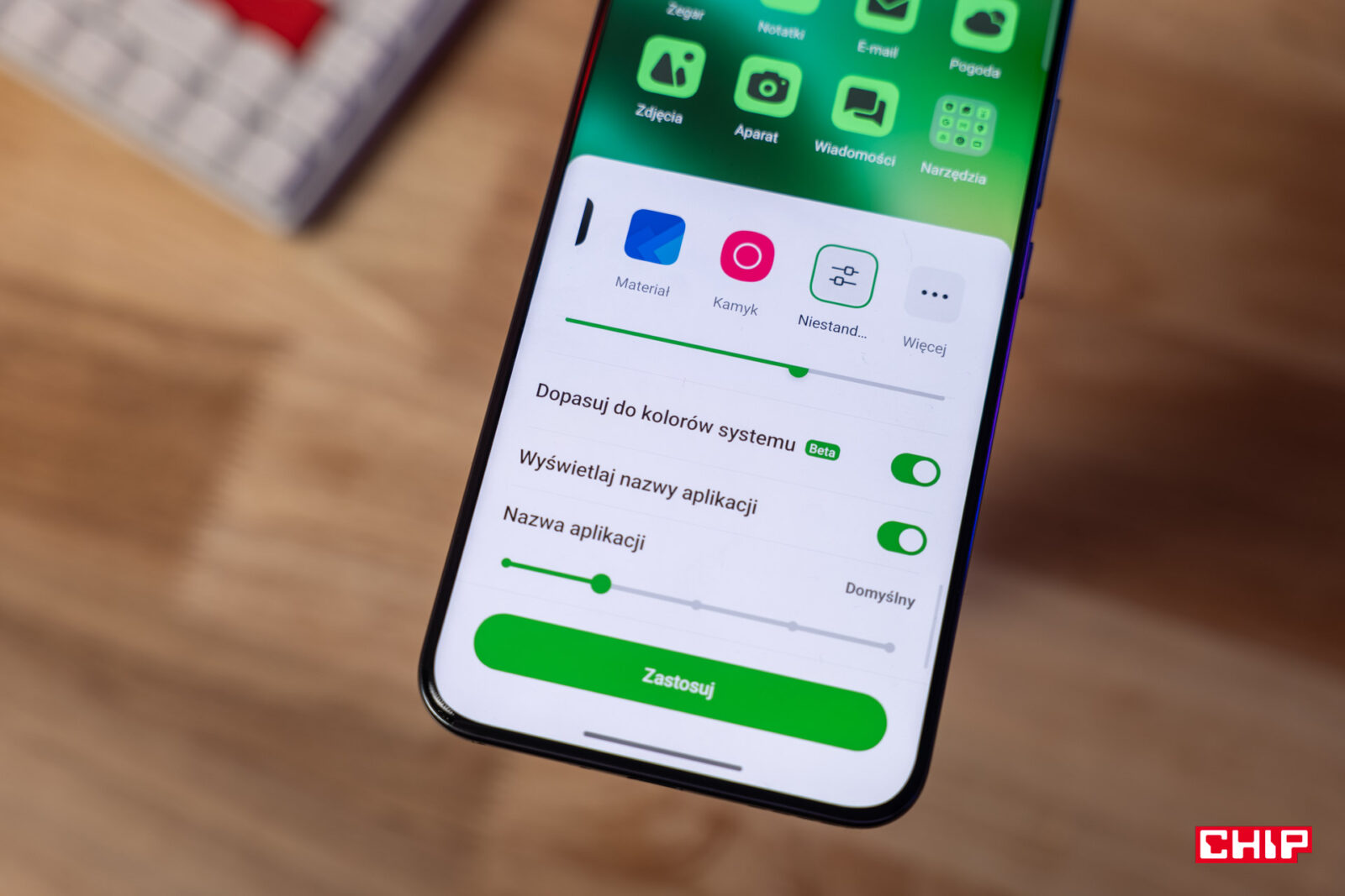W pewnych miejscach nakładka realme UI przypomina to samo, co kilka lat temu. To w dalszym ciągu pstrokate rozwiązanie, nawet jeżeli mamy opcję ustawienia koloru ikon dopasowanego do kolorów wiodących w systemie (na razie w wersji beta, a więc część aplikacji nie idzie na rękę). Tym ikonom zmienimy też kształt i rozmiar, usuniemy podpisy lub zastąpimy je czymś innym. Możemy też korzystać ze sklepu realme, który jednak nie oferuje bogatej gamy zastępczych ikon. Podobnie nakładka upiera się przy czcionce Roboto (tej brzydkiej) dla języka polskiego, gdy inne kraje mają ładniejszy font. Możemy za to pobrać zastępczy krój pisma ze sklepu z motywami.
